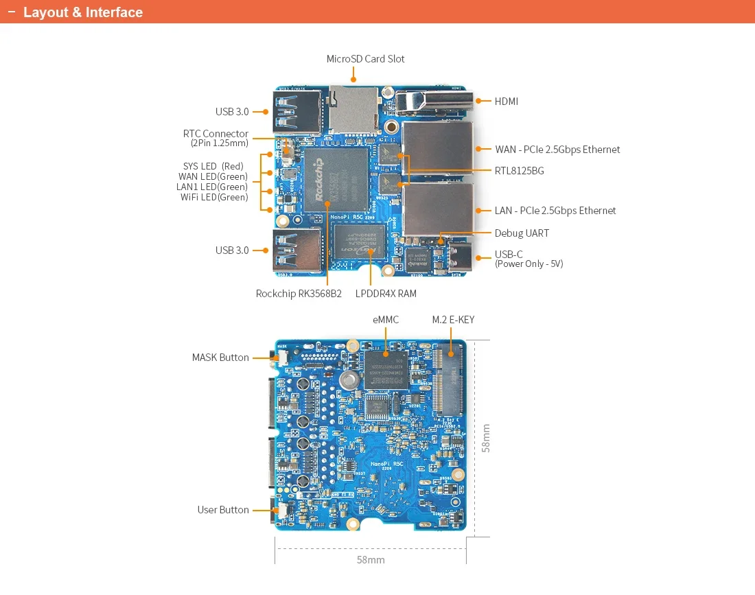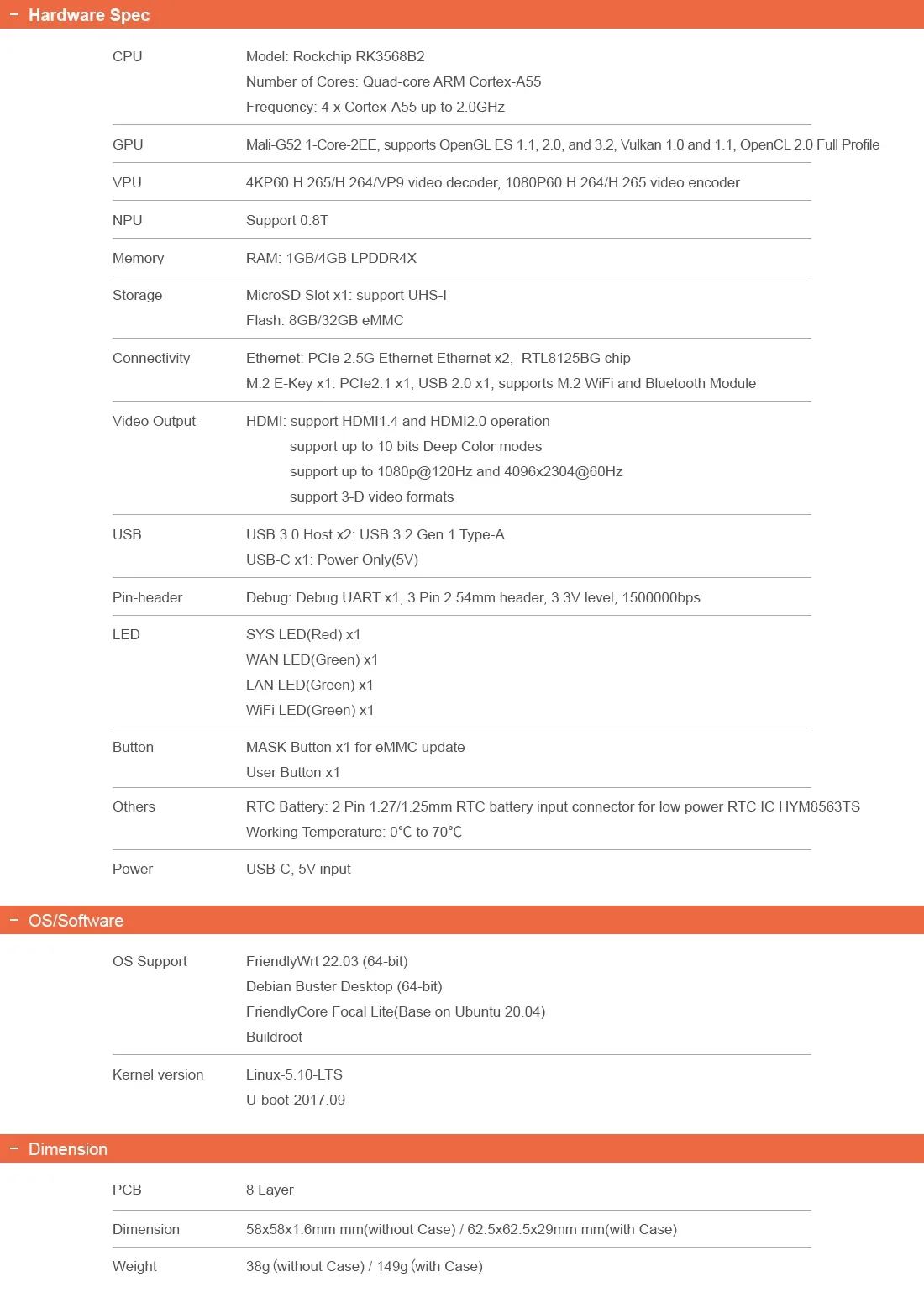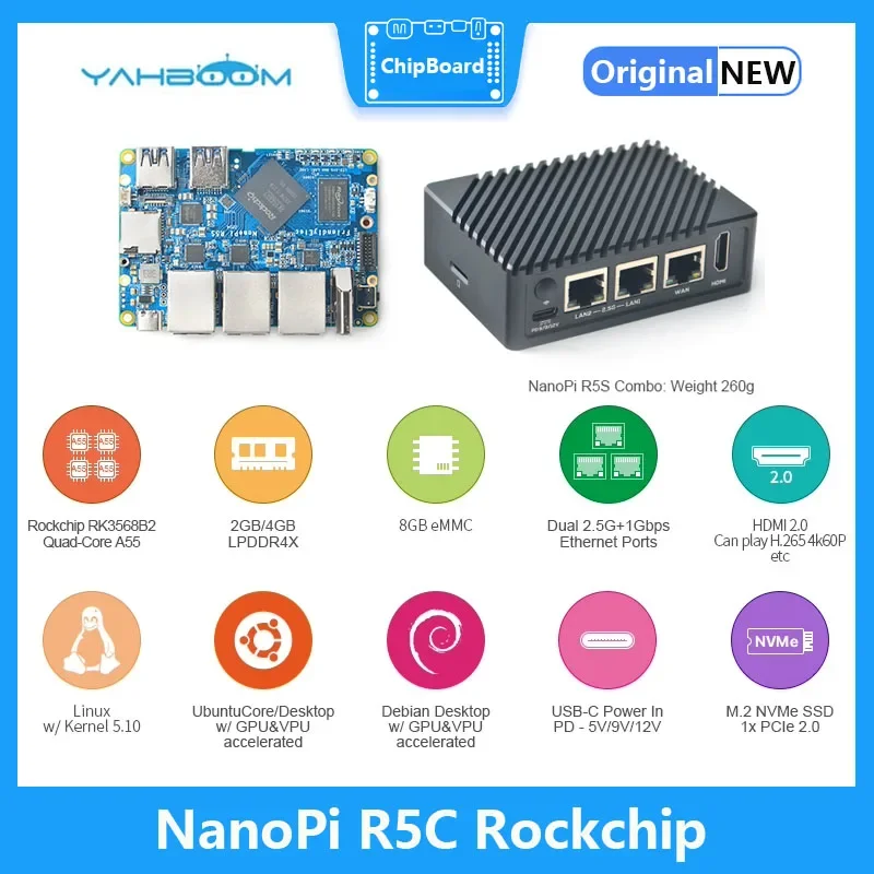 Comprar Nanopi R5S RK3568 Placa OpenWRT A55 HDMI2.0 2.5G Gigabit Puerto de red Mini enrutador