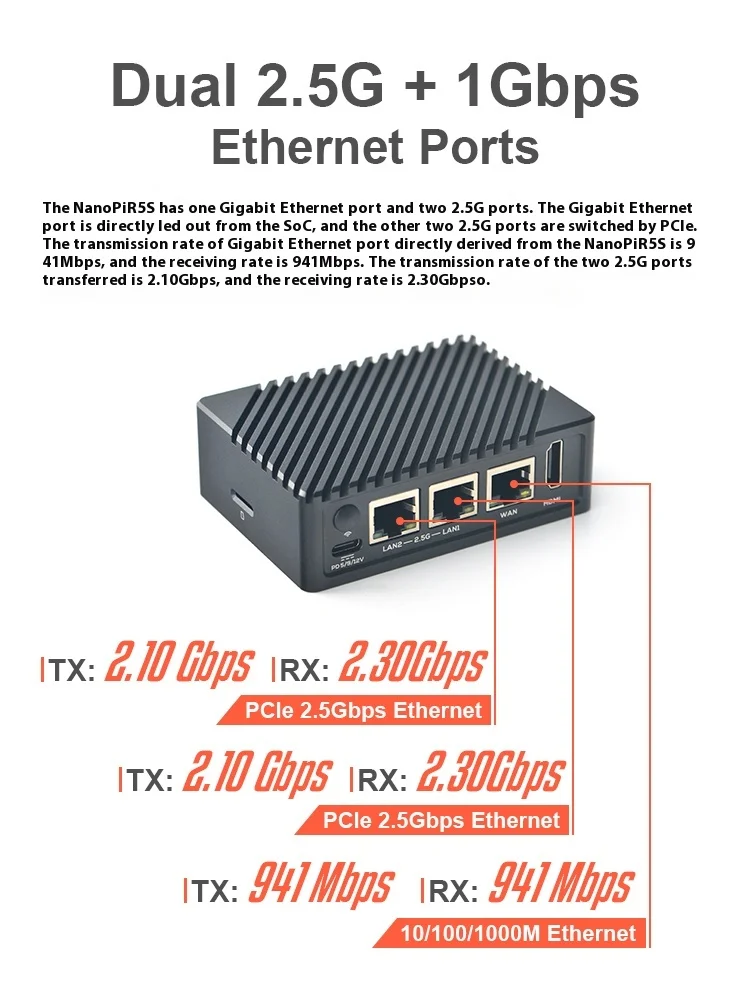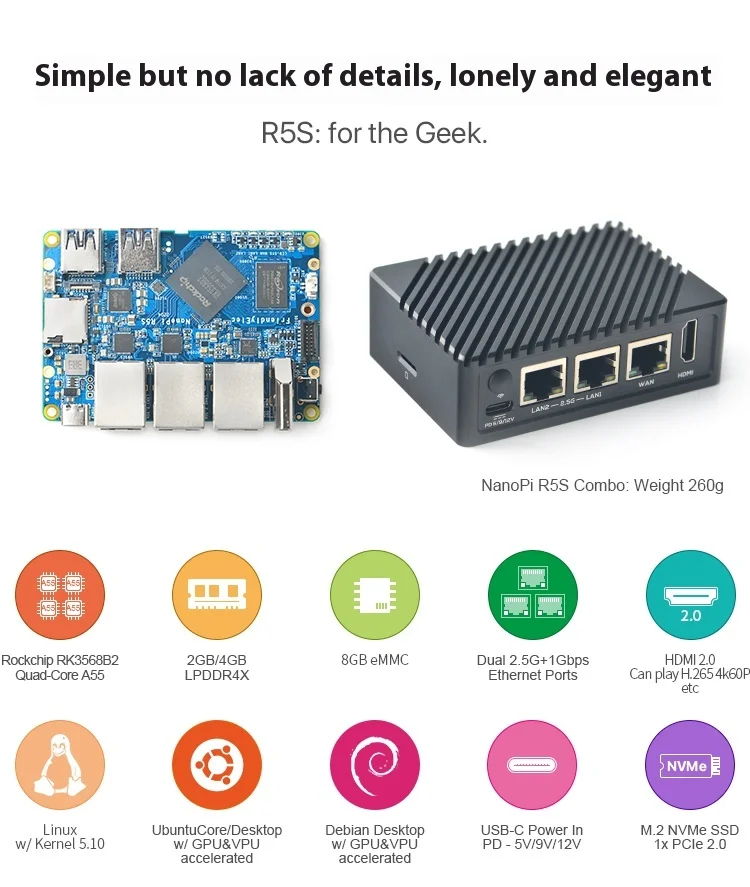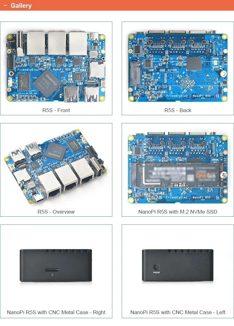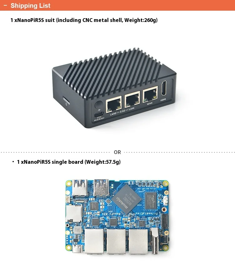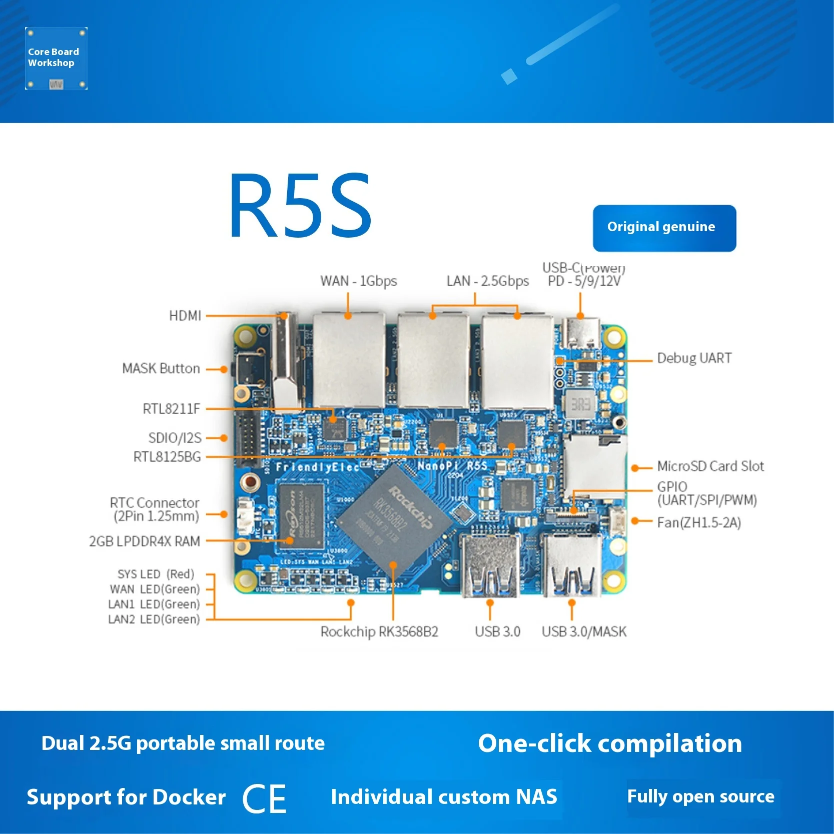 Comprar NanoPi R5S Router Dual 2,5G + Gigabit Mini Placa de desarrollo CNC, carcasa de Metal, RK3568