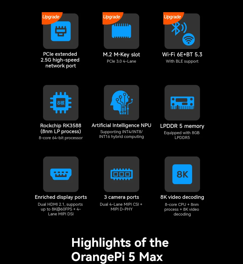 Naranja Pi 5 Max LPDDR5 Rockchip RK3588 WiFi+BT OrangePi 5 MAX