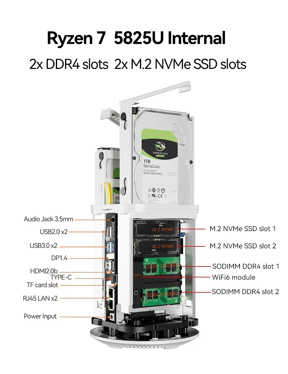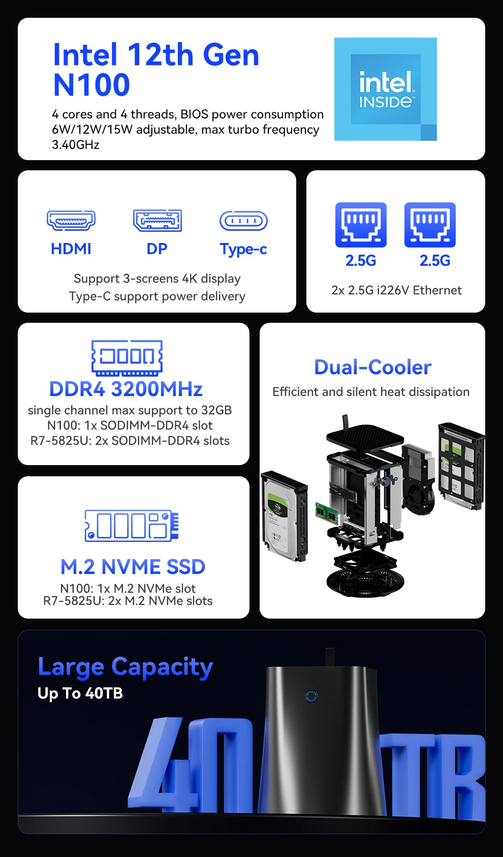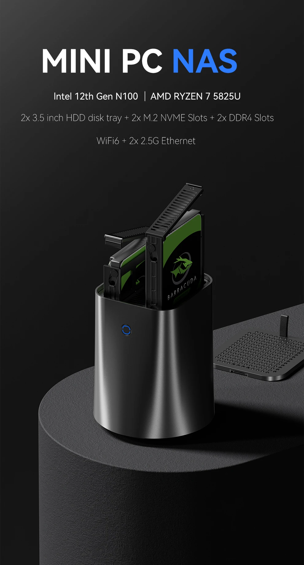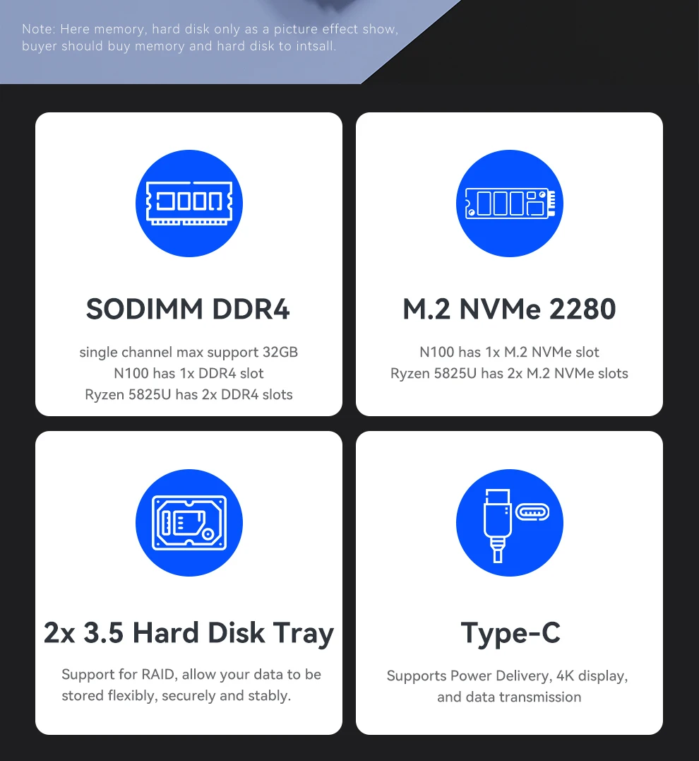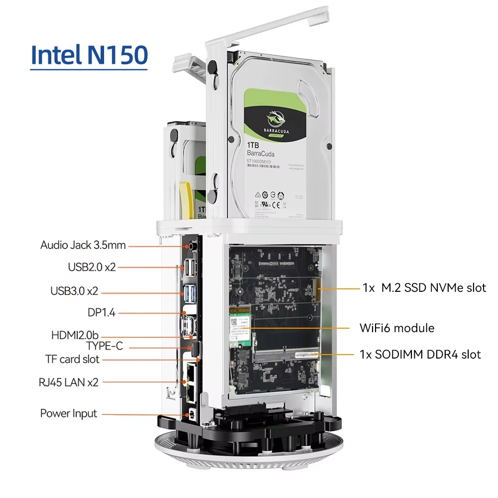 Comprar NAS Mini PC Intel N150 Ryzen 7 5825U DDR4 M.2 NVMe SSD 2,5G Ethernet WiFi6 2x2,5/3,5 pulgadas HDD RAID compatible con FreeNas Windows 10/11
