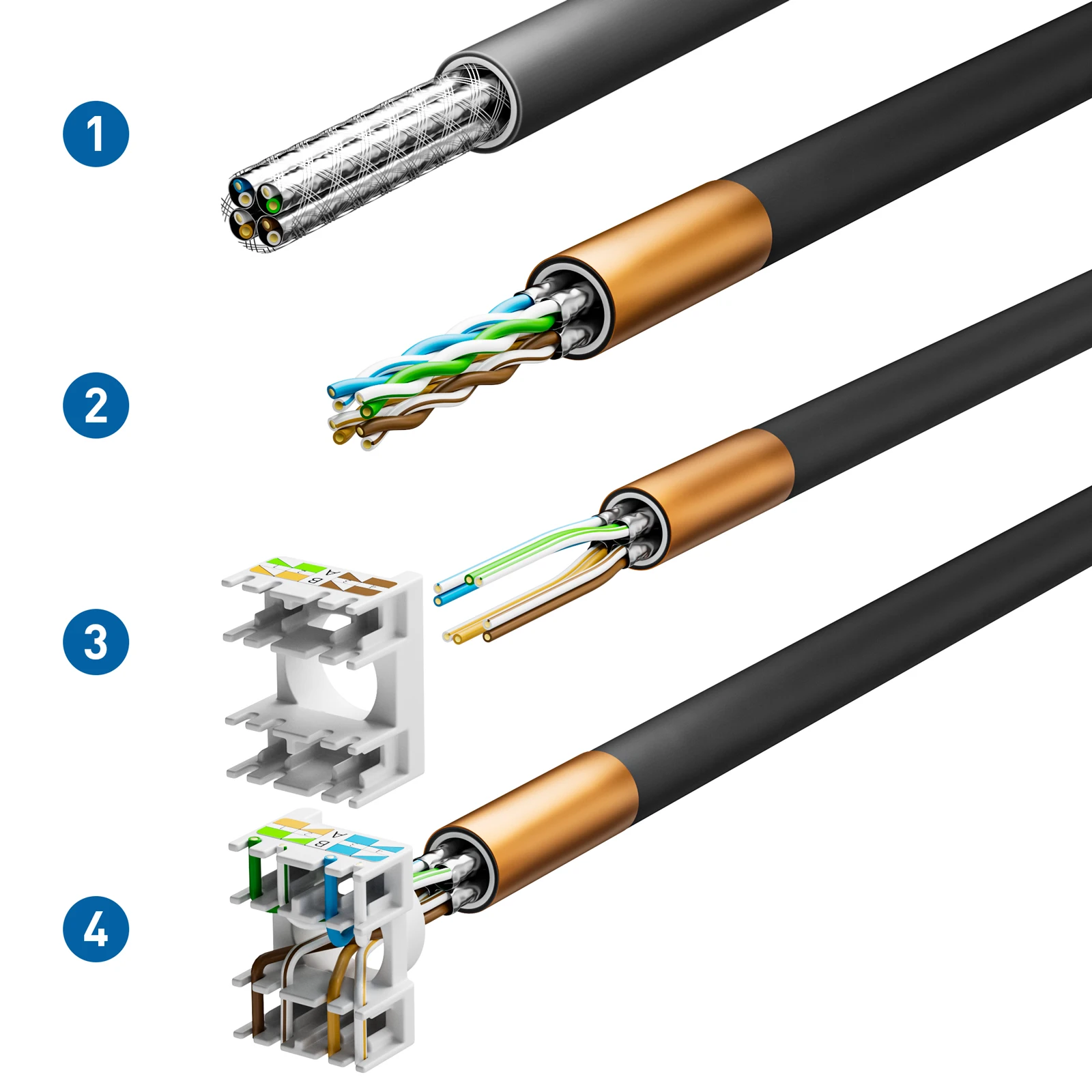 Compatible con cable STP/FTP sólido o trenzado y blindado de 23-24 AWG.