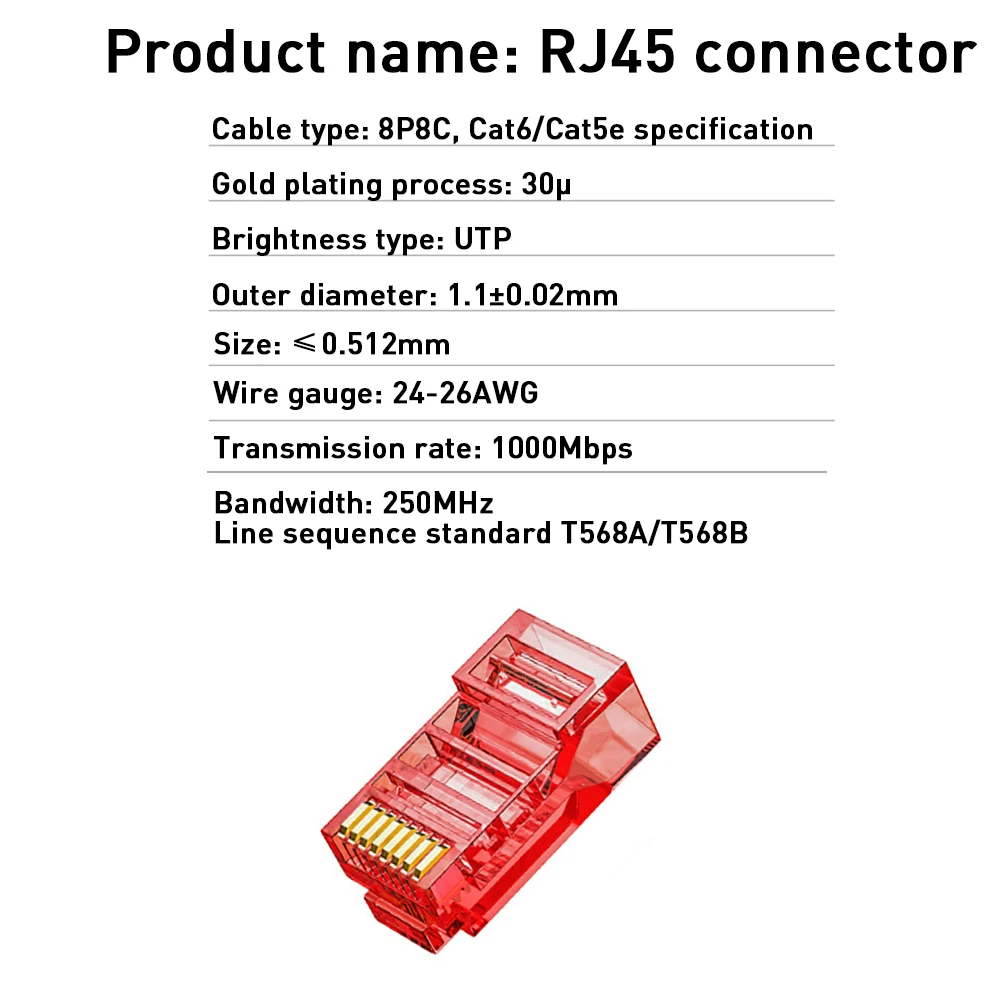 Comprar Natalink RJ45 CAT6 CAT5e Conector Pasante Modular 8P8C Extremo Cristal Chapado en Oro para Cable de Red UTP Sólido o Trenzado