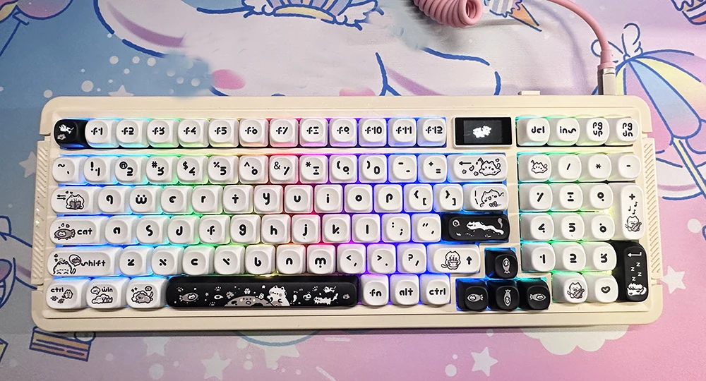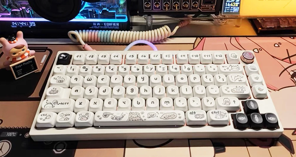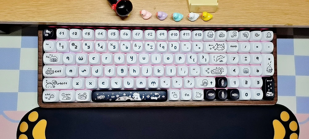 Dye-Sublimation PBT Keycaps: With high-quality PBT material and an anti-grease coating, these keycaps provide top-notch durability and a great feel for your typing. less prone to grime buildup. The Dye-Sublimation technology made the color has penetrated into the keycap, the service life of up to ten years will not fade.