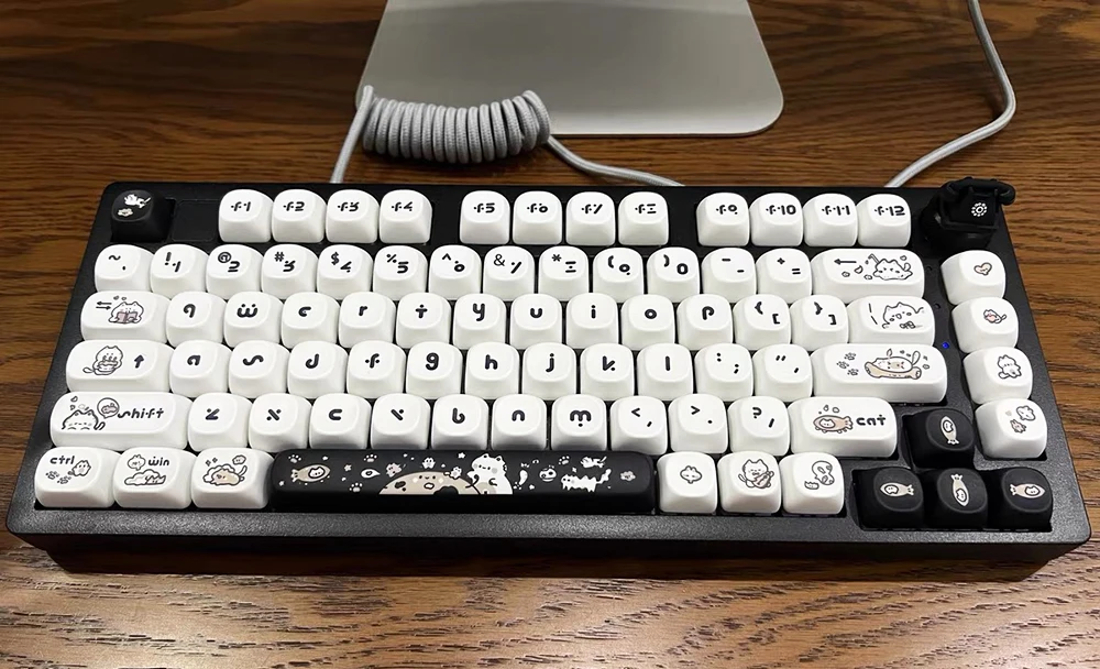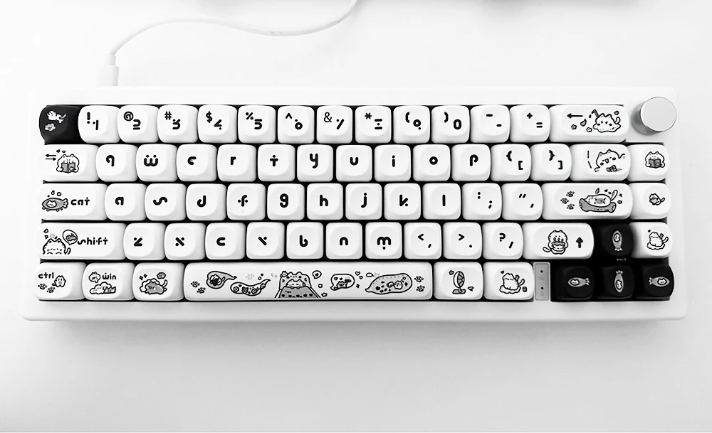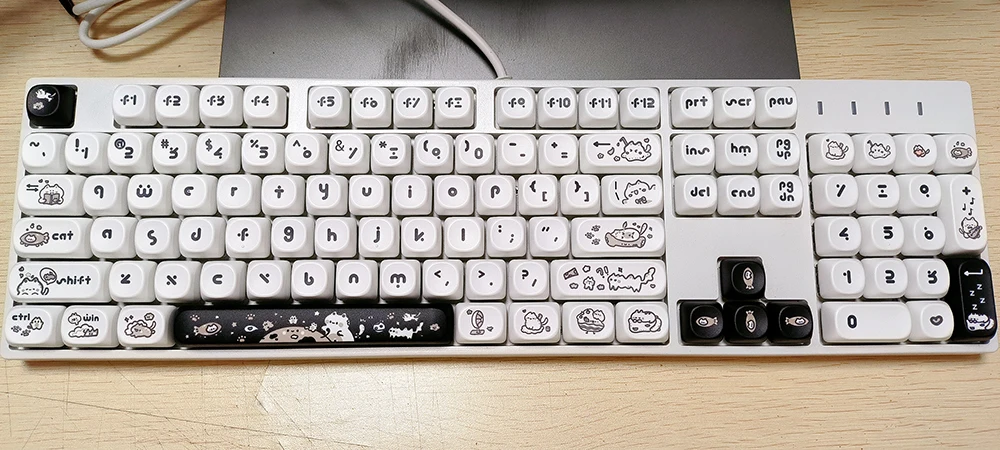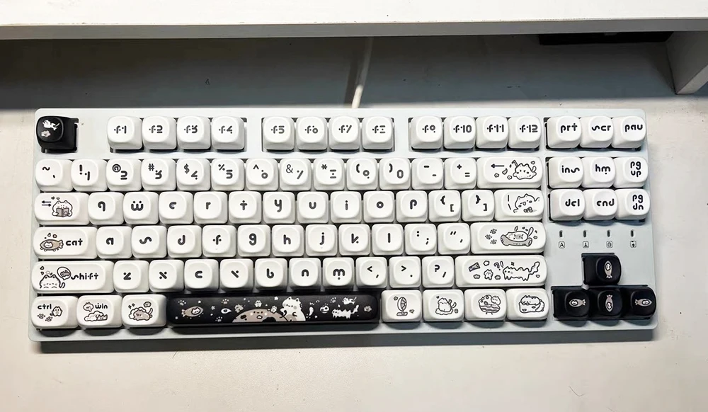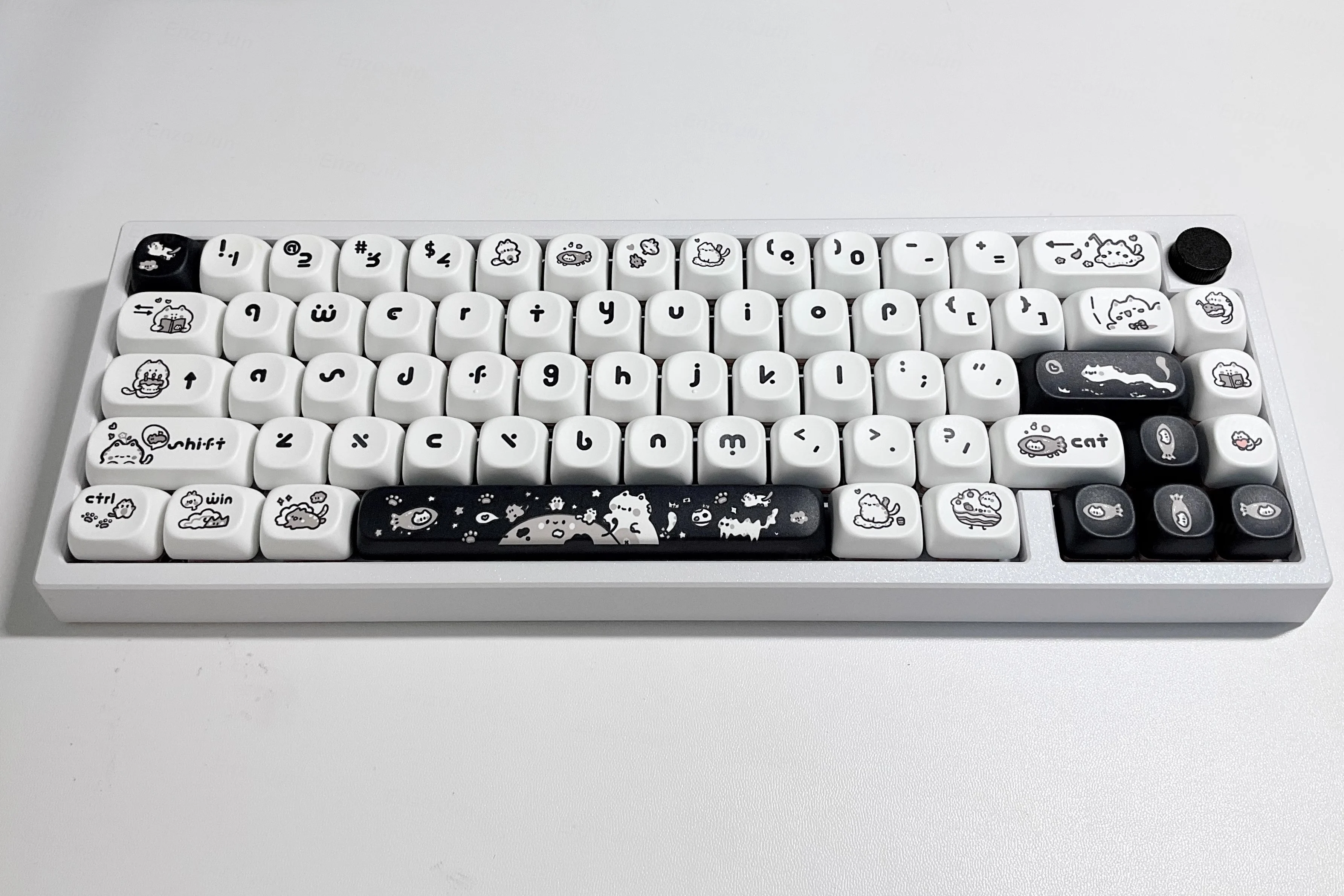 Comprar Naught Cat-Tapa de tecla negra y blanca, accesorio con perfil MOA, PBT, sublimación de tinte para teclado mecánico MX Switch Gaming, 140 teclas