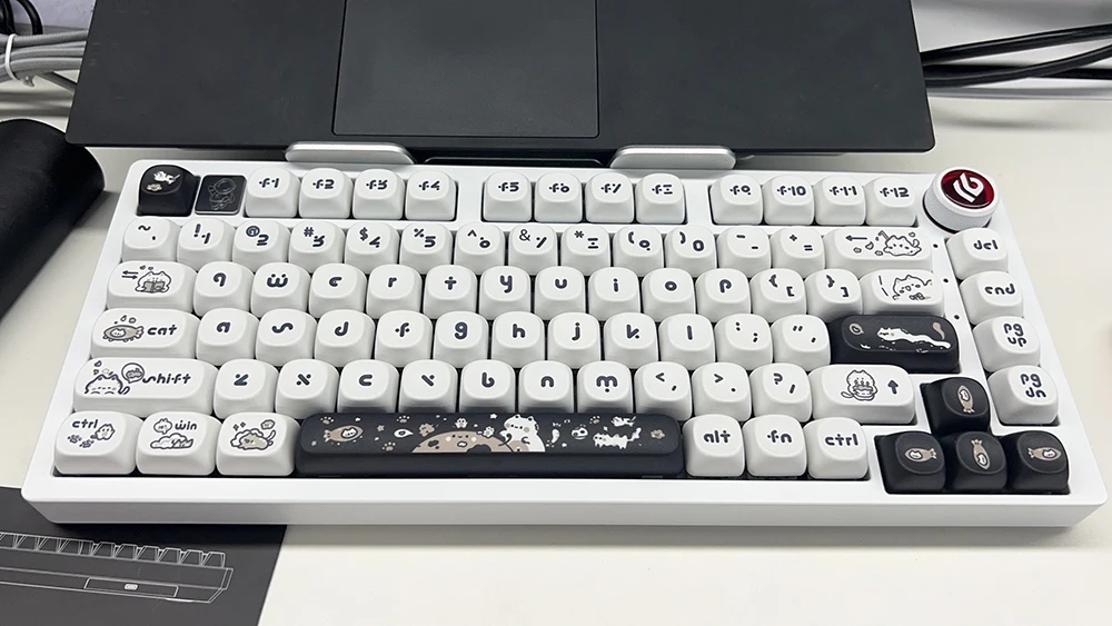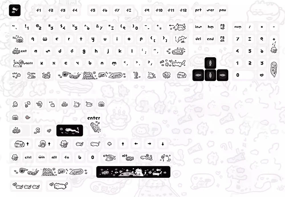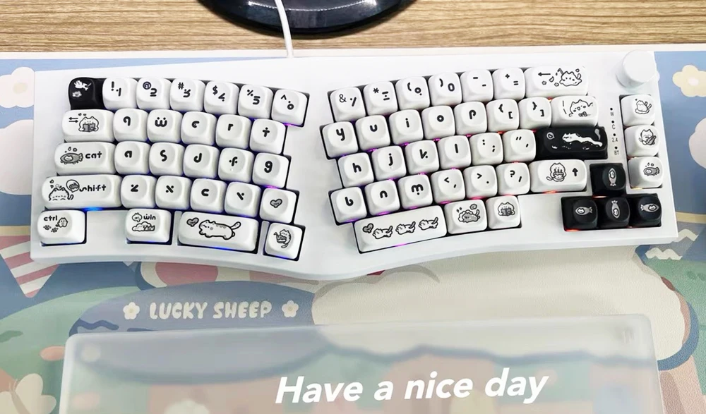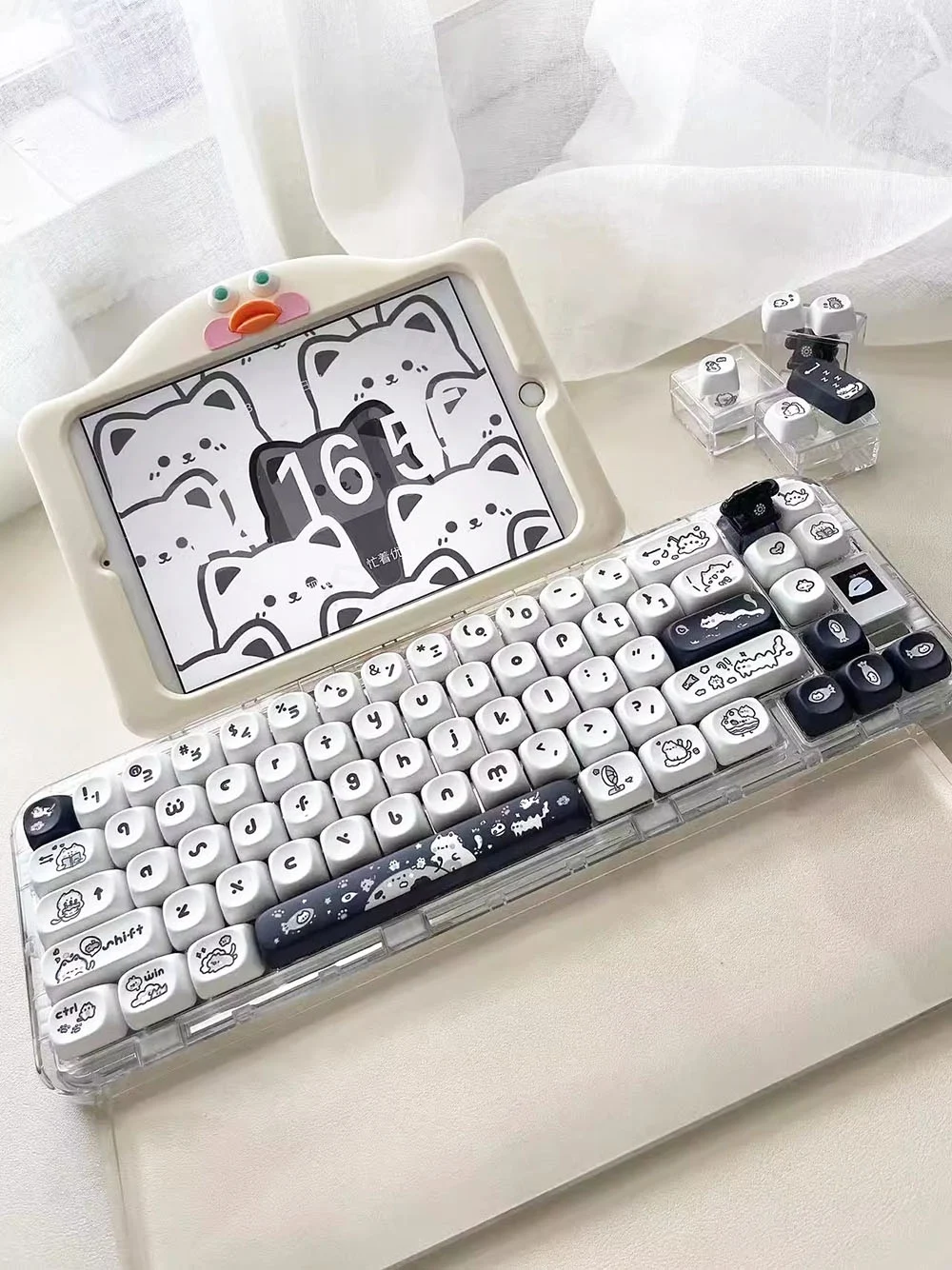 Comprar Naught Cat-Tapa de tecla negra y blanca, accesorio con perfil MOA, PBT, sublimación de tinte para teclado mecánico MX Switch Gaming, 140 teclas