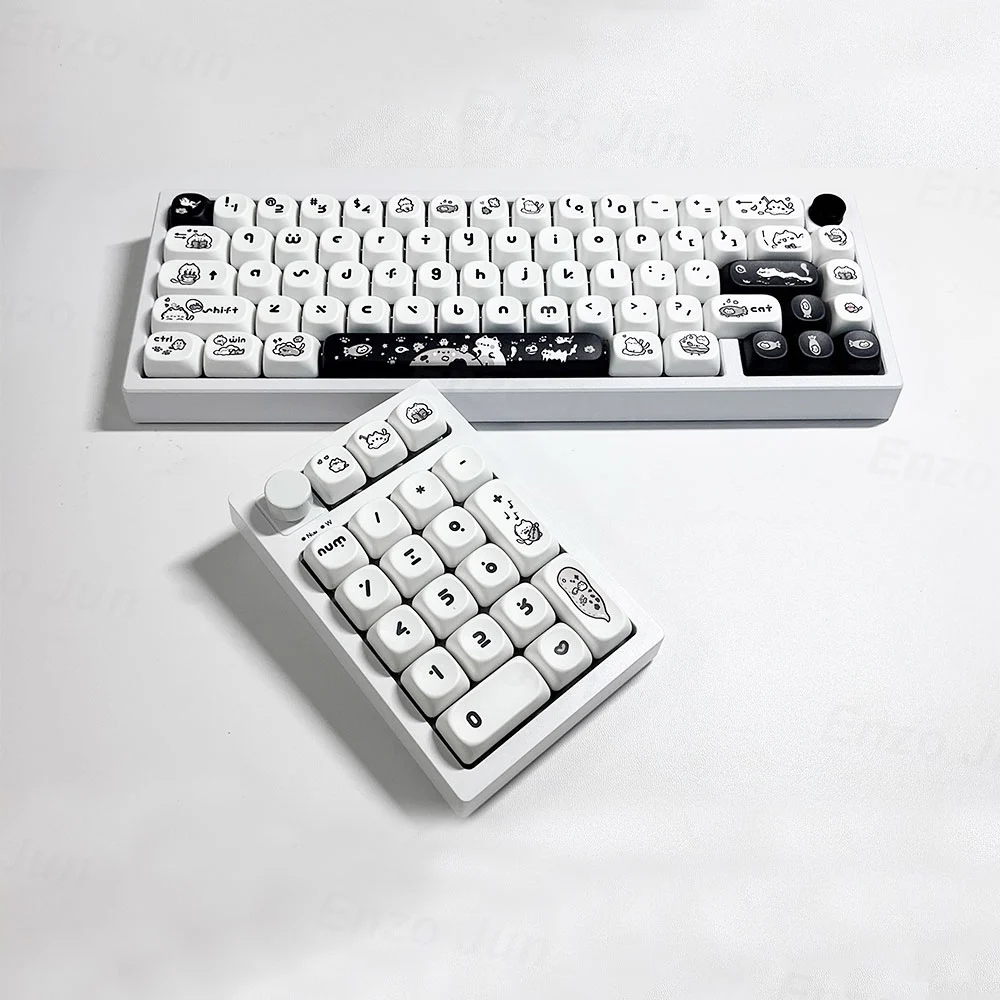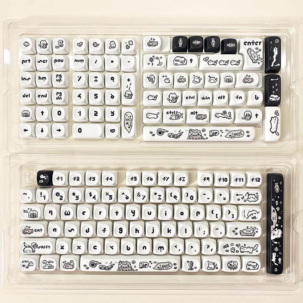 Comprar Naught Cat-Tapa de tecla negra y blanca, accesorio con perfil MOA, PBT, sublimación de tinte para teclado mecánico MX Switch Gaming, 140 teclas
