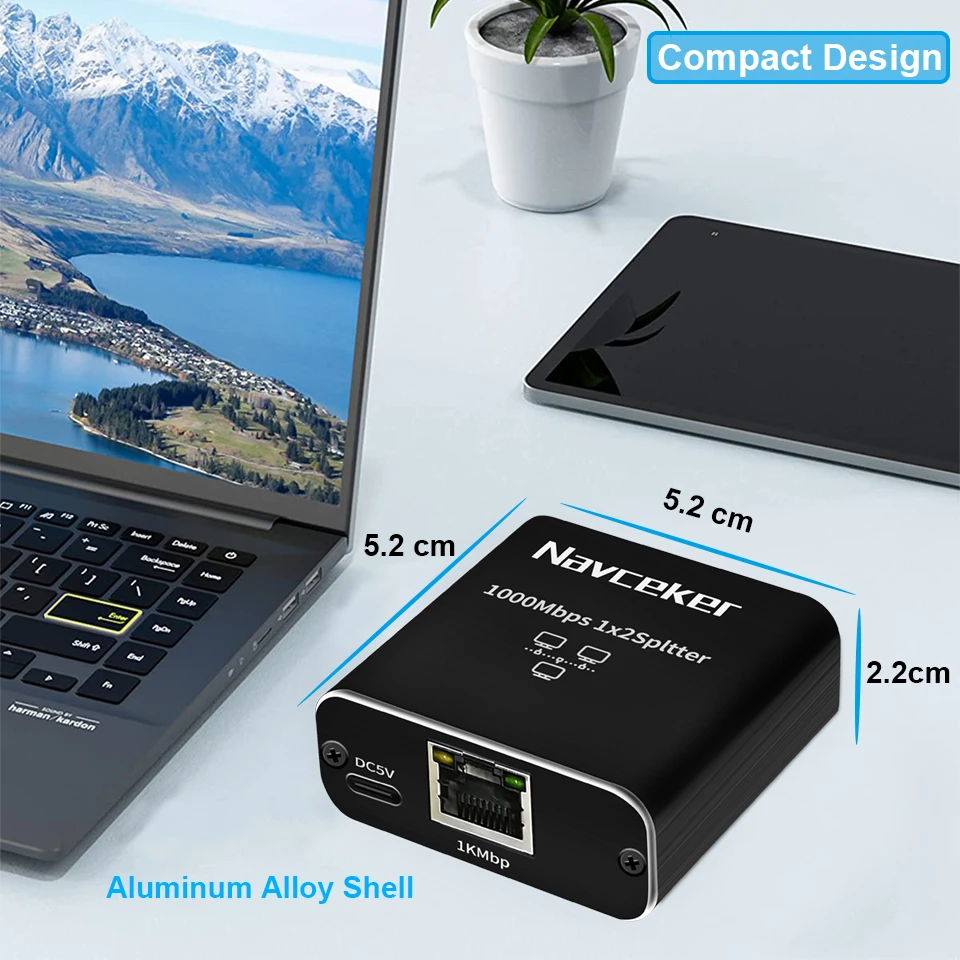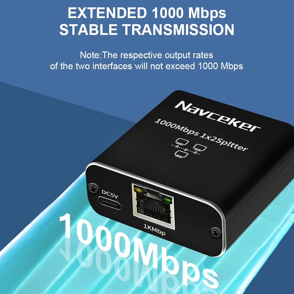 Splitter Ethernet 1 a 2: El divisor Ethernet Navceker RJ45 se utiliza principalmente para resolver el problema de conexión causado por cableado insuficiente. Utilice el cable de alimentación USB y admita dos computadoras para compartir una línea Ethernet simultáneamente mediante el método de intercambio físico.Nota: Dos puertos hembra funcionan simultáneamente.