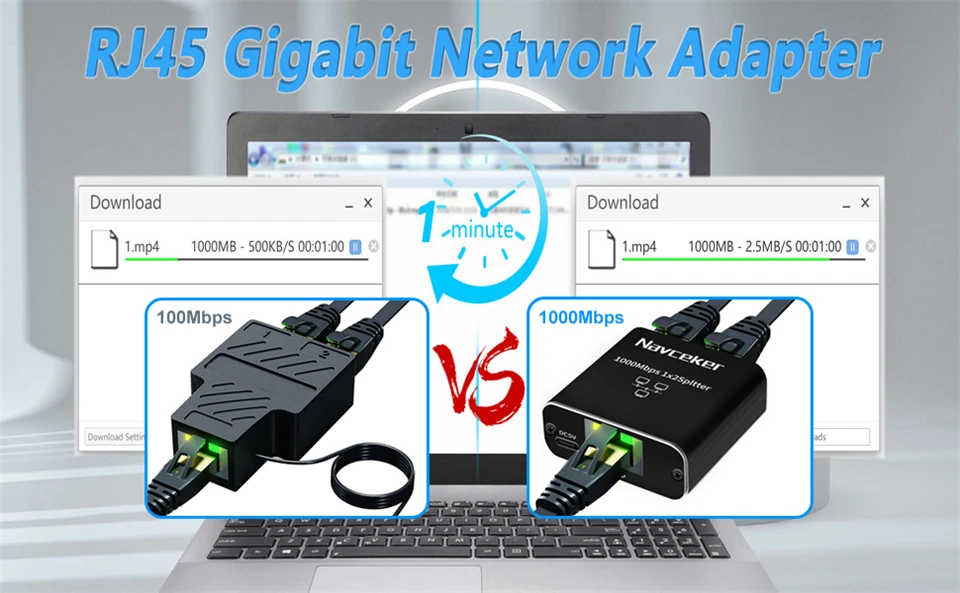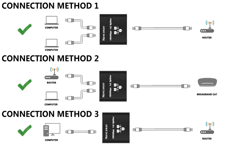 Adaptador de conector divisor Navceker RJ45 de 1 Gb, divisor Ethernet Lan de 1 a 2 vías, acoplador Gigabit, conexión de Cable de red para ordenador portátil