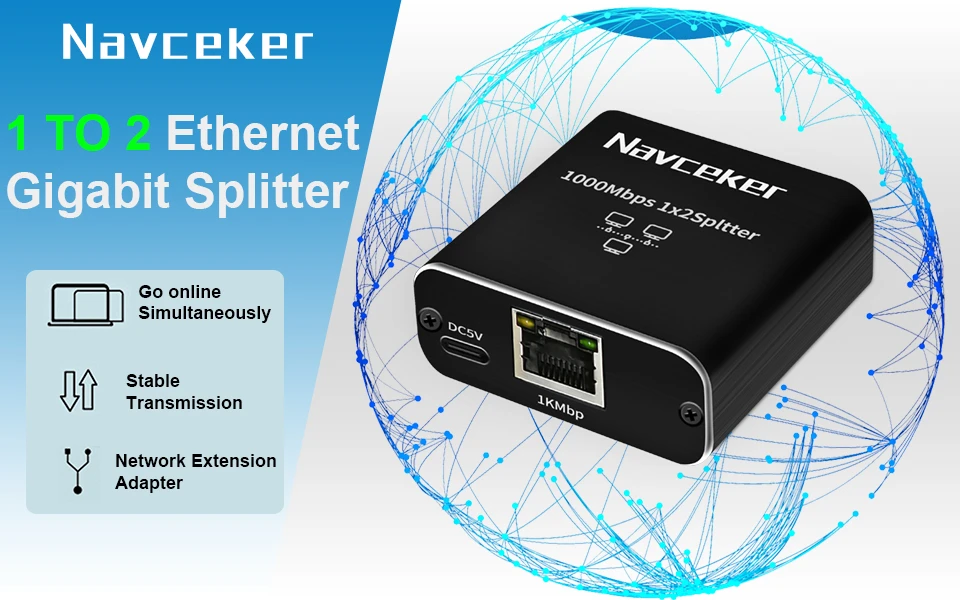 Diseño de ventajas del adaptador divisor Ethernet Navceker:
