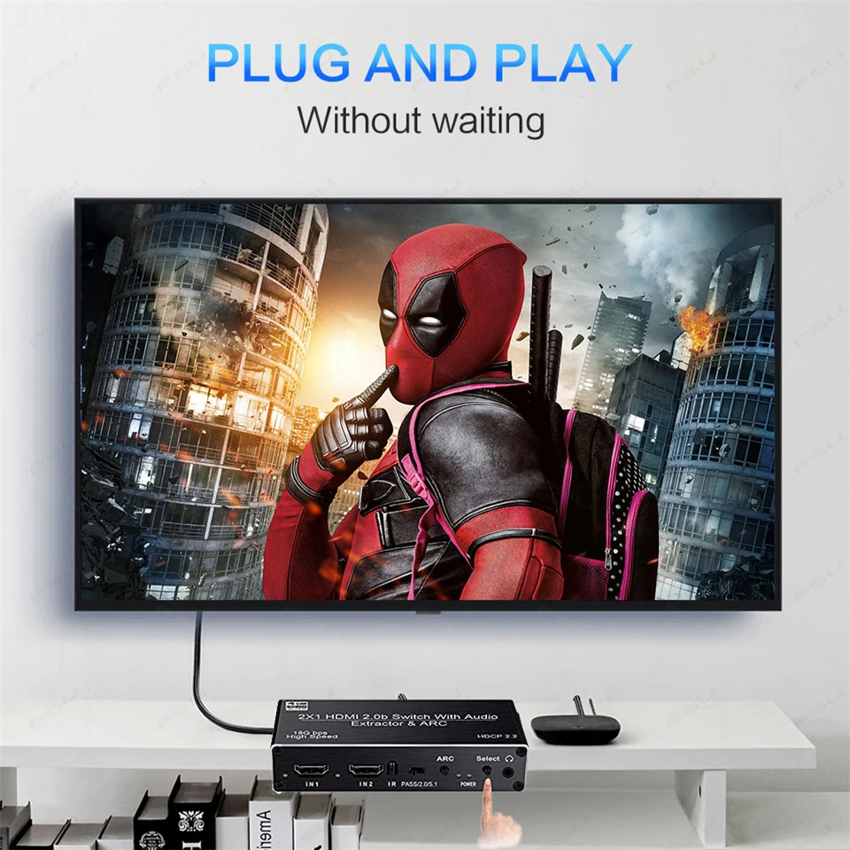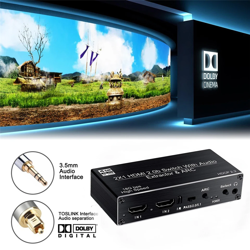 · ★4K@60HZ 2X1 HDMI SWITCH with AUDIO EXTRACTOR: This 4K HDMI Switch allows you connect Two HDMI 2.0 Sources to one display device, Each input source support audio extract by the Toslink+L/R+Coaxial audio output channel. No loss of quality after you split the signal. No degradation in audio quality.