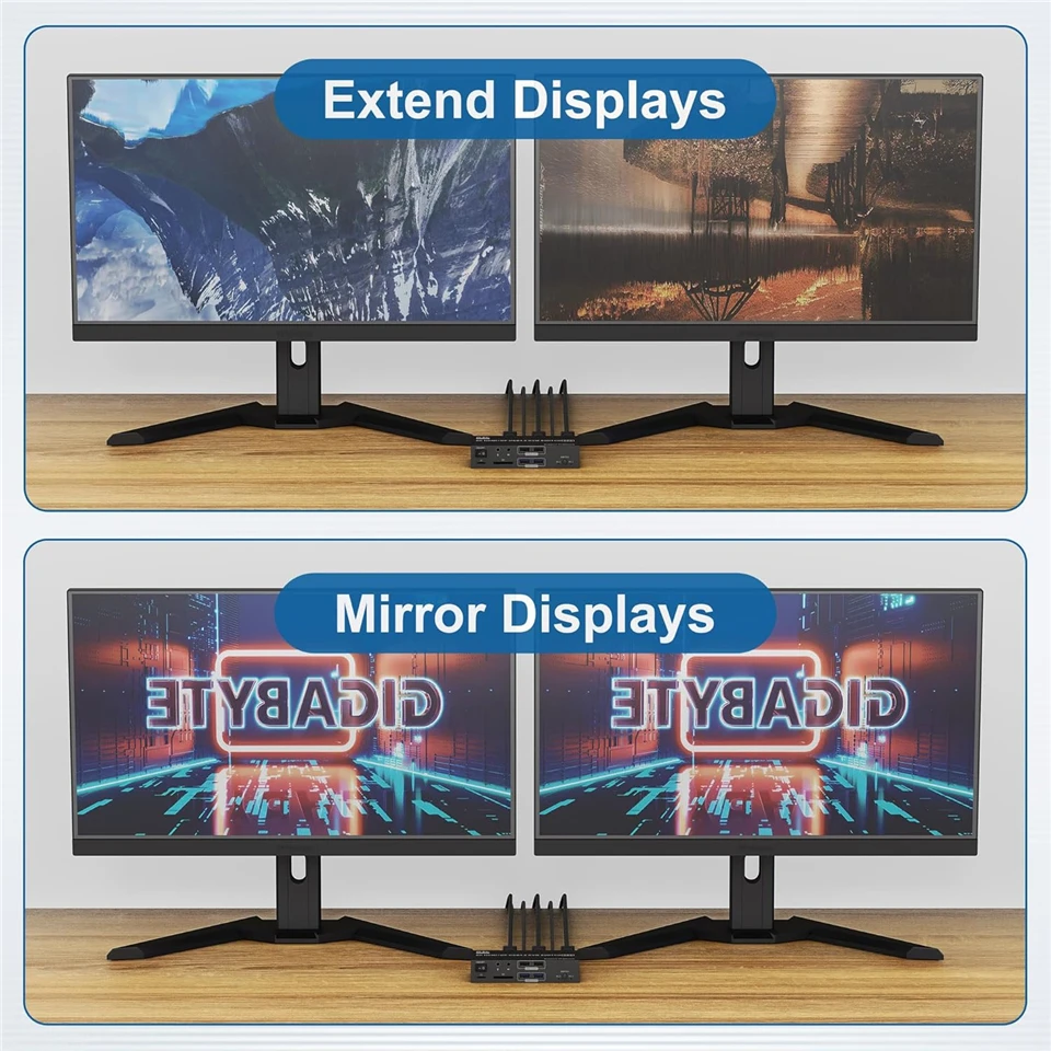 HDMI2.1 + DP 2.0: conmutador kvm de monitores duales, DP 2.0 admite hasta 8K@60Hz y 4K@240Hz(DSC), 4K@60/120/144Hz, 1080P o resoluciones inferiores para una experiencia de visualización increíble con imágenes realistas y colores vibrantes.El puerto HDMI 2.1 admite resoluciones de hasta 8K@60Hz y 4K@144Hz, 4K@60/120Hz, 1080P o más bajas para una experiencia de visualización increíble con imágenes realistas y colores vibrantes.