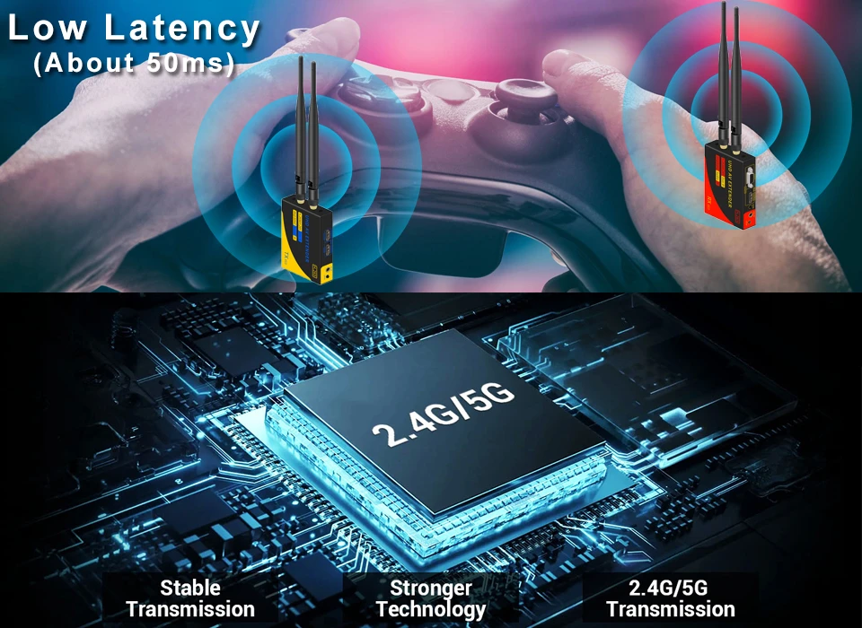 La solución de vídeo HD inalámbrica ZY-AD65, Navceker H.265 permite la transmisión inalámbrica de audio y vídeo desde cualquier fuente de vídeo HDMI, como PC/HDTV, para dispositivos de visualización, incluido un monitor HDTV/HD a través de la banda de 2,4 GHz/5,8 GHz, con muy baja latencia.