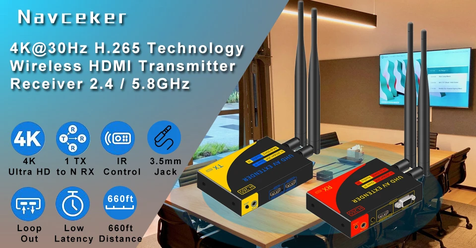 Comprar Navceker 4K 30Hz HDMI transmisor y receptor 4K inalámbrico 5G 200M WIFI HDMI extensor RJ45 transceptor múltiples pantallas para NVR