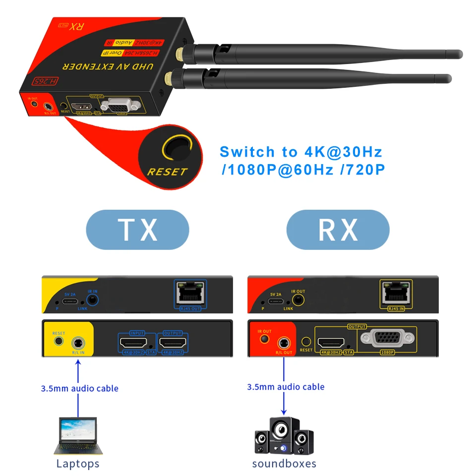 Navceker WIFI HDMI transmisor y receptor lemorele inalámbrico HDMI extensor transceptor 4K 30Hz para ordenador NVR