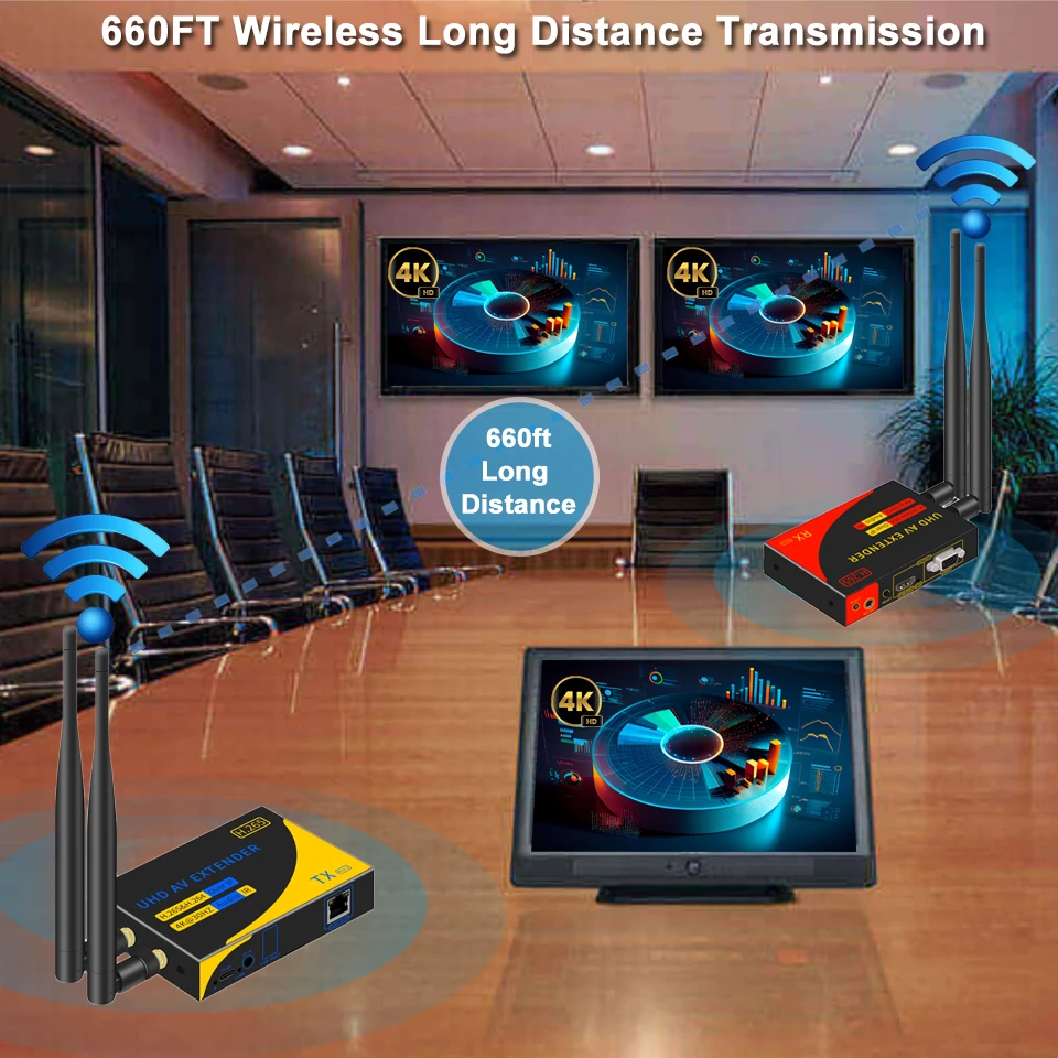 Extensor HDMI de 660 pies RJ45 sobre WIFI Bridge receptor transmisor HDMI 4K inalámbrico para CCTV, computadora