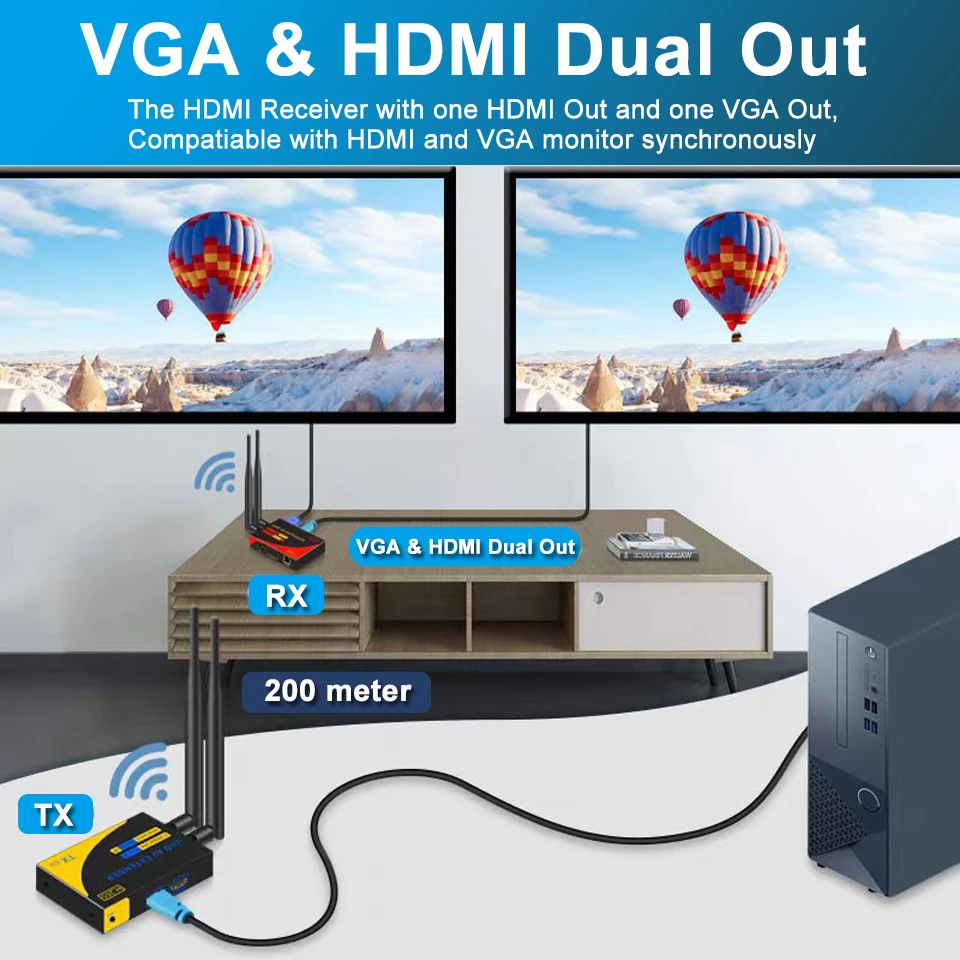 Navceker Transmisor y receptor de vídeo HDMI inalámbrico 4K 5G 200M 1080P Extensor HDMI RJ45 Múltiples pantallas para cámara NVR Laptop PC HDTV