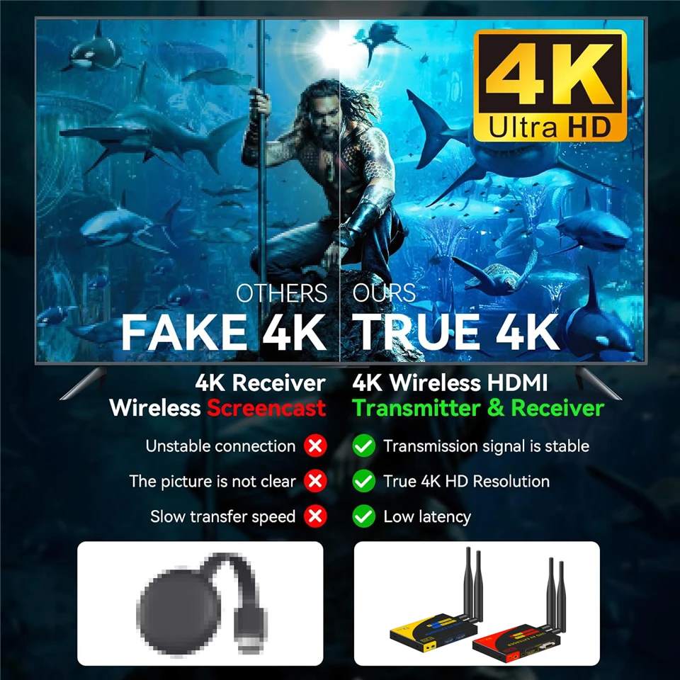 ⚡Rendimiento premium: este transmisor y receptor inalámbrico HDMI tiene una transmisión de largo alcance de hasta 660 pies, puede generar una resolución de 720P / 1080P / 4K a 30 Hz para imágenes nítidas.La latencia ultrabaja está entre 0,05 y 0,1 s.