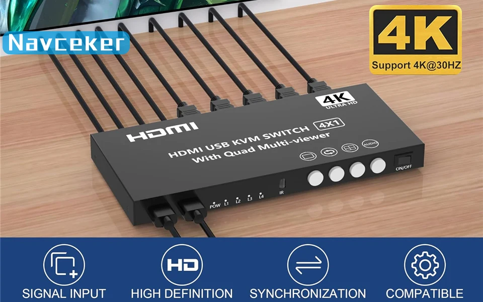 Comprar Navceker 4K HDMI KVM Switch 4x1 Quad Multi Visor 4 en 1 Salida KVM HDMI Pantalla Multivisor Sin Costuras para 4 PC Compartir Ratón Teclado