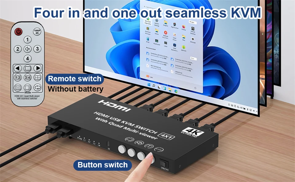 4K KVM HDMI Quad Multiviewer 4X1 1080P 60Hz HDMI Quad Pantalla Segmentación Multiviewer Multivisor Interruptor HDMI sin costuras para PC a HDTV