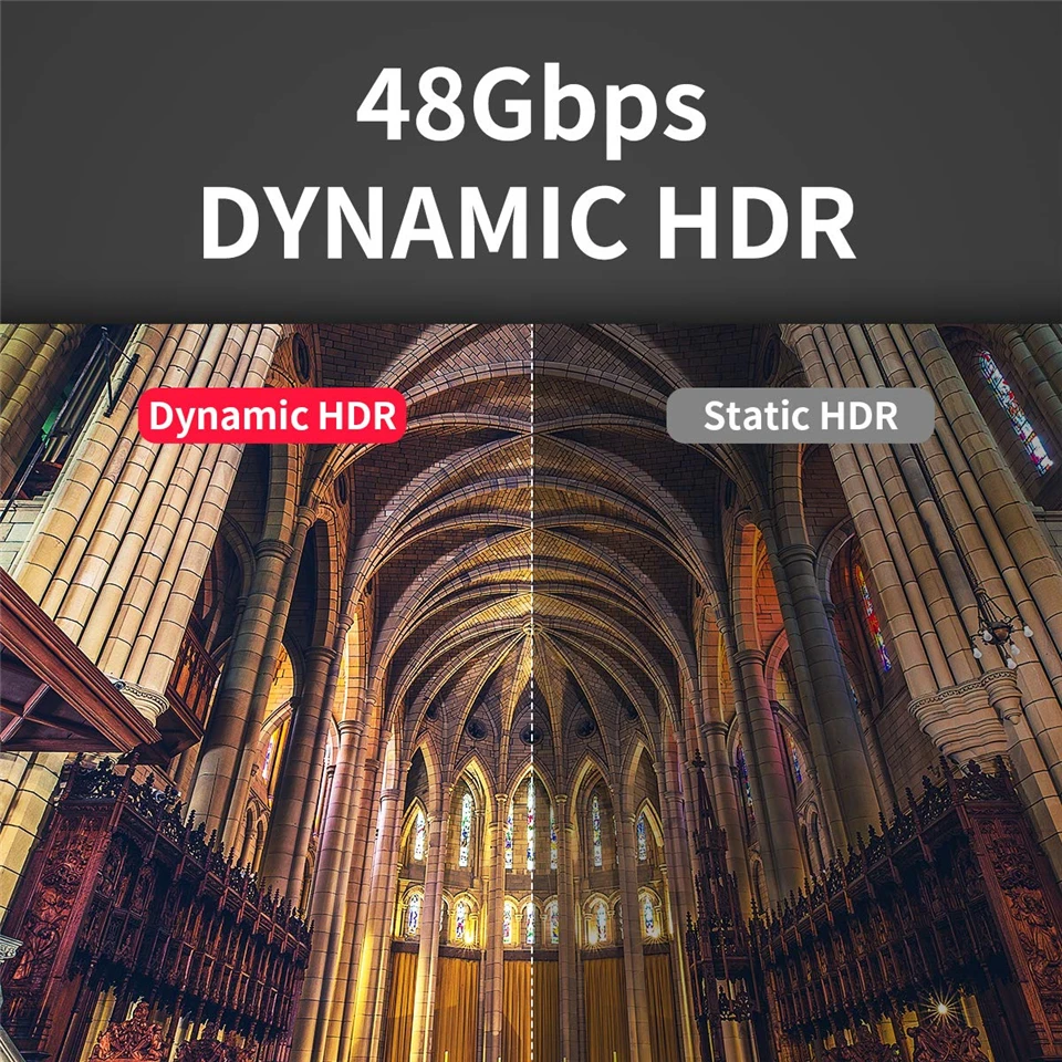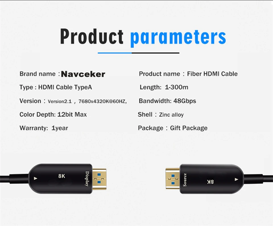Con los nuevos procesos de fabricación, podemos incluir todas las características de HDMI 2,1 en un diseño simple pero Delgado utilizando nuestra tecnología de cableado de cobre puro sin oxígeno. La mayoría de los cables HDMI usan un cableado 30 AWG más delgado y más barato. El cable HDMI 2,1 de Navceker utiliza un cableado de fibra óptica que permite una velocidad de 48Gbps, lo cual es necesario para velocidades ultra altas con HDR y 8K a 120Hz.Hay 2 modelos opcionales, diferentes modelos tienen diferentes interfaces y apariencia, elija el modelo adecuado antes de la compra:(1) El color negro es cable de fibra óptica HDMI 2,0, HDMI 2,2 y HDCP 2,0, 4K @ 60Hz 18Gbps HDR10 3D HDMI.Último 48Gbps 8K HDMI 2,1 Cable BT2020 8K @ 120Hz 2,1 HDMI Cables ópticos Cabo HDMI 2,1 UHD HDMI Cable 2,1 HDR HDMI 2,1 Cables de fibra para PS4 TV