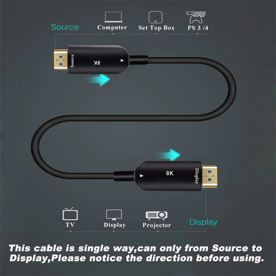 8K HDMI 2,1 Cable 48Gbps 4K @ 120Hz HDMI 2,1 Fibra óptica Macho a macho 2,1 HDMI Cables UHD HDMI 2,1 Cable 5m 10m para DVD TV