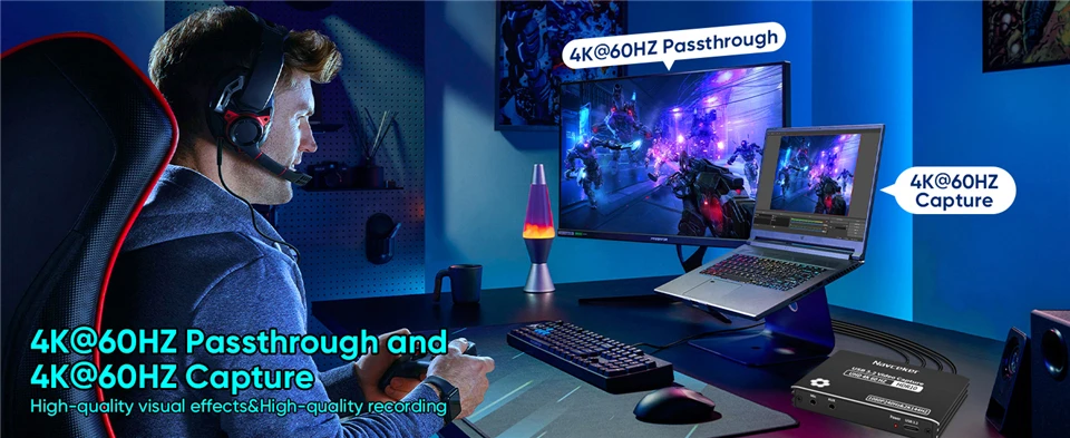 No necesita controladores ni utilidades adicionales. Simplemente conecte Navceker Video Capture a cualquier PC con USB 3,2 tipo C y comience a transmitir y grabar al instante.