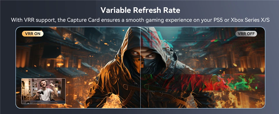 Con soporte VRR, la tarjeta Navceker Cpature garantiza una experiencia de juego fluida en su PS5 o XBox Series X/S.
