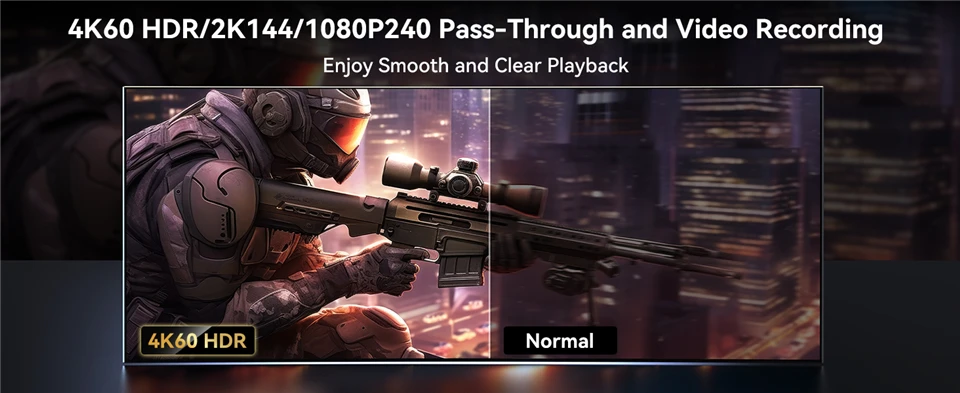 4K @ 60FPS HDR/ 2K @ 144FPS/ 1080p @ 240FPS paso a través y grabación de vídeo, disfrute de una reproducción suave y clara