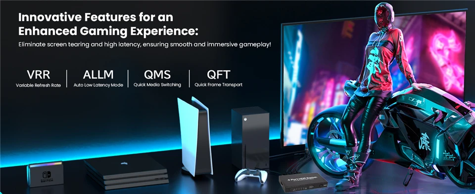 ZY-AQ8-4, El conmutador Navceker HDMI 2.1 es un conmutador HDMI 2.1 de 4 puertos 4K 120 Hz para su última configuración de juegos y cine en casa.Admite 3 entradas HDMI y 1 salida HDMI, lo que permite HDMI 2.1 y HDCP 2.3, junto con 8K Ultra HD y compatibilidad en todos los HDMI.