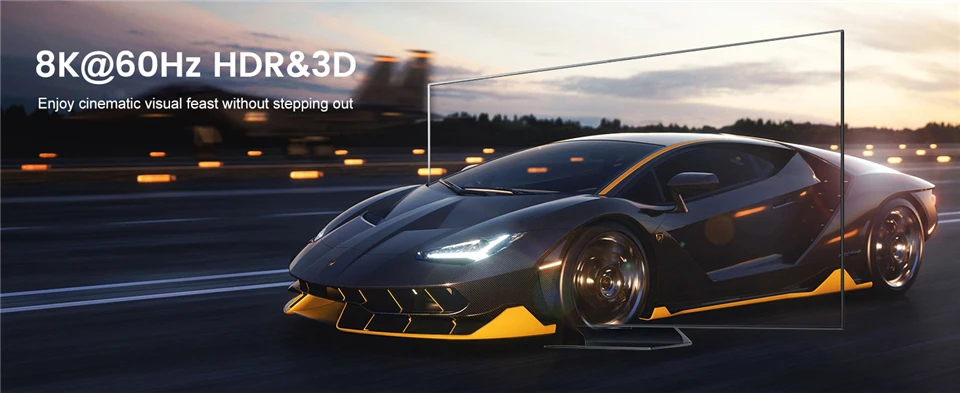 Chip integrado de alto rendimiento, entrega video a la Resolución de 8K @ 60Hz, 4K @ 120Hz, 1080P @ 240Hz, 4K/120/60Hz, 2K/60/30/24Hz, 3D, 1080P, 1080i, 720P, 720i, 576P, 576i, 480P, 3D, proporciona el impresionante vídeo 8K para usted.