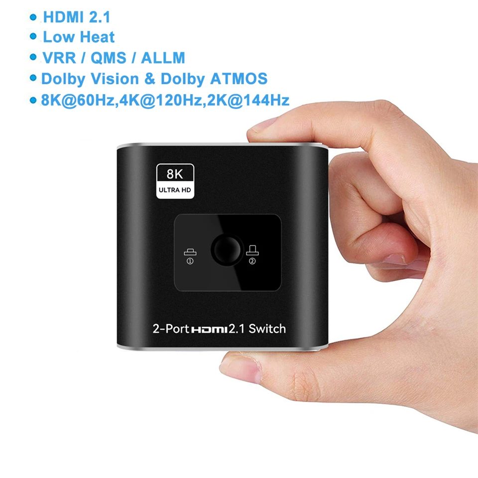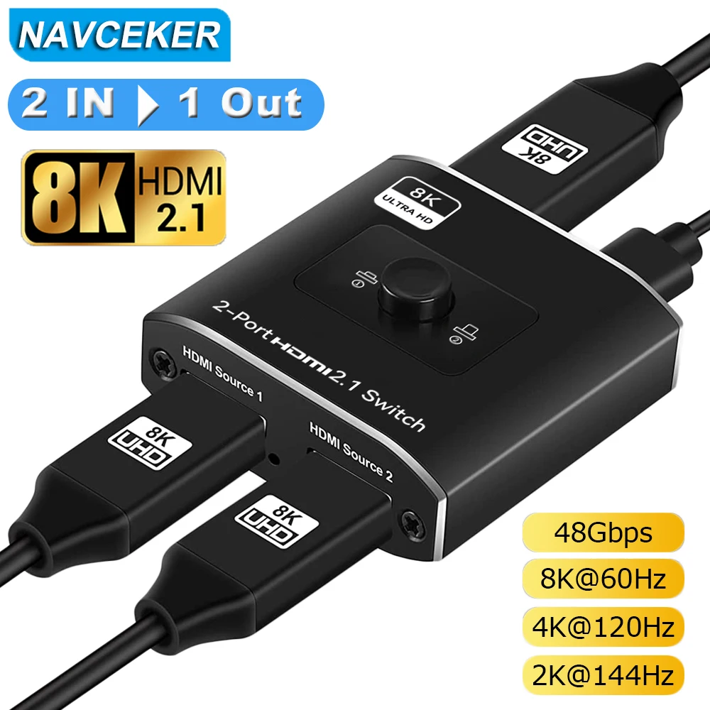 Comprar Navceker-conmutador HDMI 2,1, compatible con 2 en 1, salida de 48Gbps, 8K @ 60Hz, 4K @ 120Hz, adaptador de interruptor con botón de interruptor para proyector HDTV