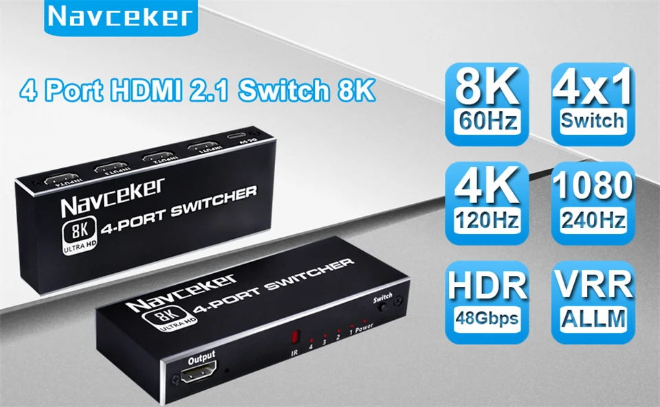 Comprar Navceker-conmutador Selector HDMI 2,1, 8K, 4K, 120Hz, HD, divisor 4 en 1, salida 3 en 1, para ordenador portátil, PC, TV Box, PS5