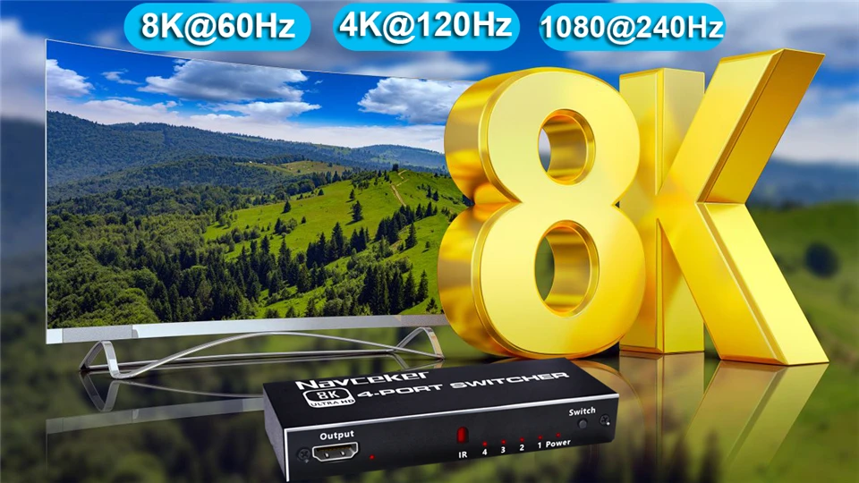 →Prueba real: Navceker 8K HDMI Switch con Apple TV Box,PS4, PS5 Pro, ordenador con tarjeta de vídeo RTX3090 y LG 8K HDMI TV. Resolución diferente y dispositivo diferente para probar tres veces antes de la entrega.