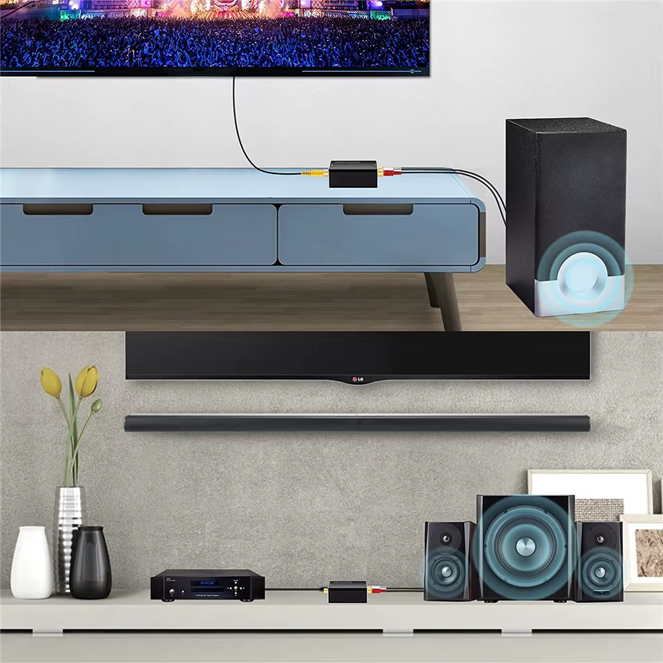 Puede convertir señales de audio digitales ópticas, USB (para PC) y coaxiales en señales de audio analógicas estéreo que están conectadas al amplificador. Ayuda a los usuarios a resolver el problema de conectar diferentes interfaces de audio a amplificadores analógicos.