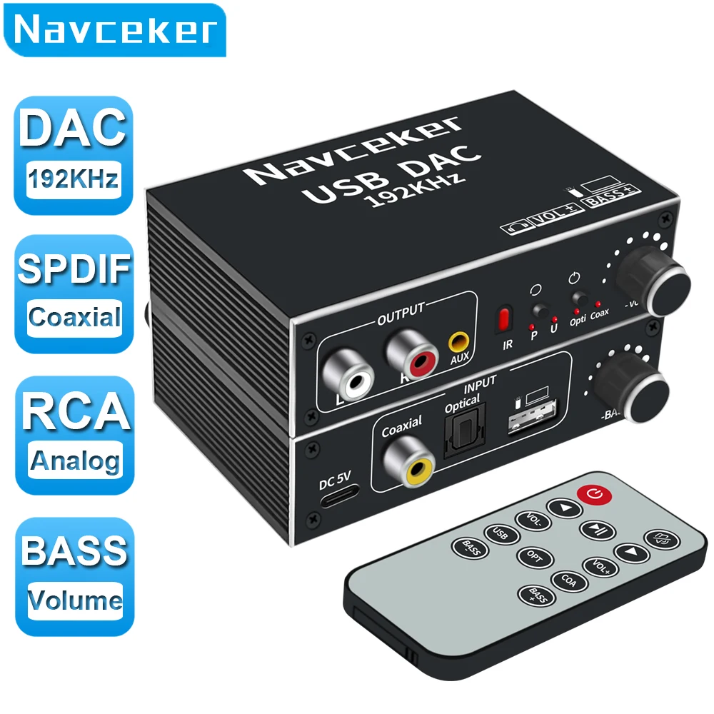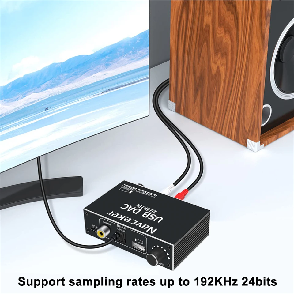 Puede convertir señales de audio digitales ópticas, USB (para PC) y coaxiales en señales de audio analógicas estéreo que están conectadas al amplificador.Ayude a los usuarios a resolver el problema de conectar diferentes interfaces de audio a amplificadores analógicos.