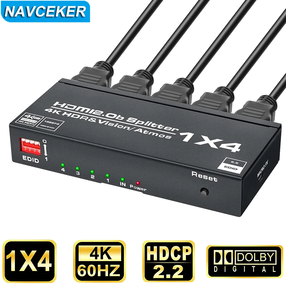Comprar Navceker-Divisor HDMI 1 en 2, duplicador a 4 pantallas HDMI, 4K @ 60Hz, con escalar HDR, Cable HDMI de alta velocidad, compatible con HDCP 2,2