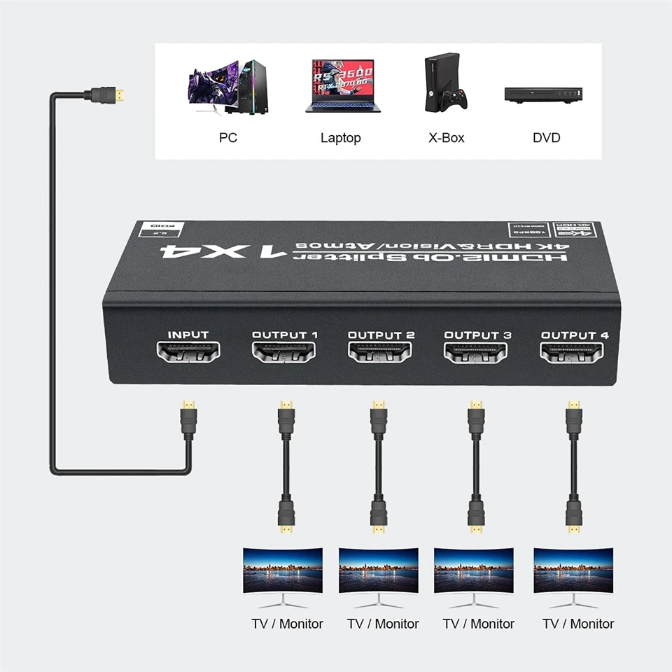 Navceker 1x2 Switch Splitter HDMI-compatible 4K 60Hz 1 en 2 Out 4 Out para monitores duales 1080P 3D 1x4 HDMI Splitter para PS4 pro