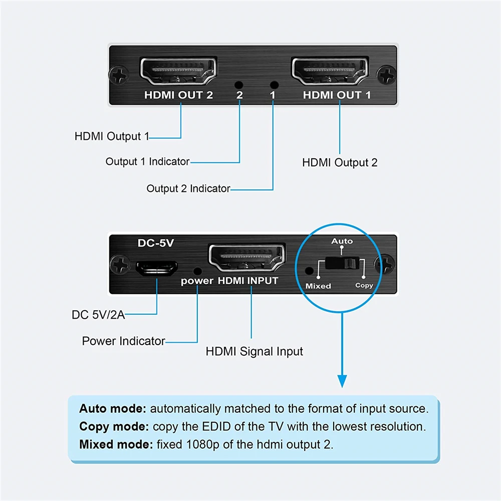 2024 mejor 4K HDMI Splitter 1x2 HDMI 2,0 Splitter 1 en 2 salidas HDMI amplificador interruptor HDR HDMI2.0 divisor para Apple TV XBox TV Box