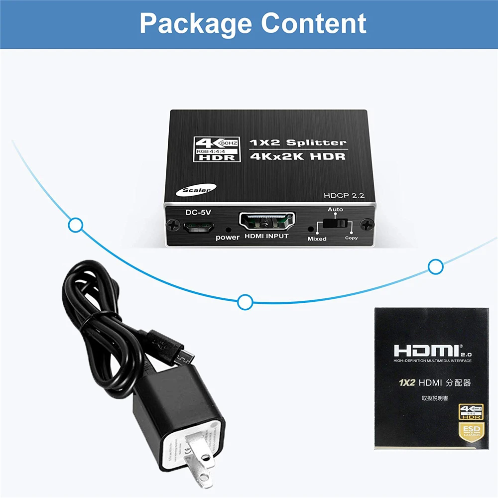 2024 mejor 4K HDMI Splitter 1x2 HDMI 2,0 Splitter 1 en 2 salidas HDMI amplificador interruptor HDR HDMI2.0 divisor para Apple TV XBox TV Box