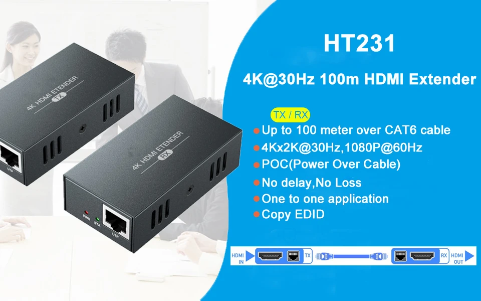 El extensor HDMI Navceker proporciona una extensión de señales HDMI a largas distancias a través de un solo cable CAT5e/6, admite una alta resolución de hasta 3840x2160 a 30Hz,. El extensor se puede utilizar para una amplia gama de aplicaciones que requieren transmisión a larga distancia de alta resolución con alta calidad por su buena estabilidad y potente seguridad.