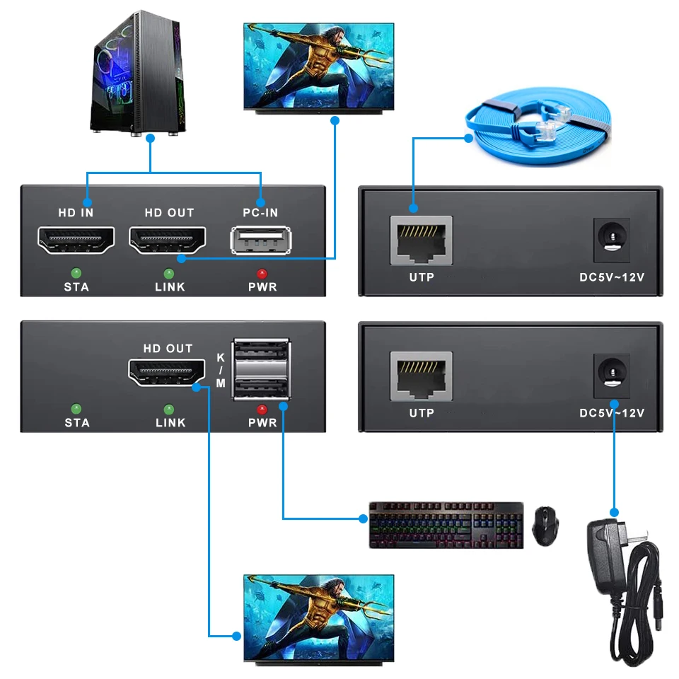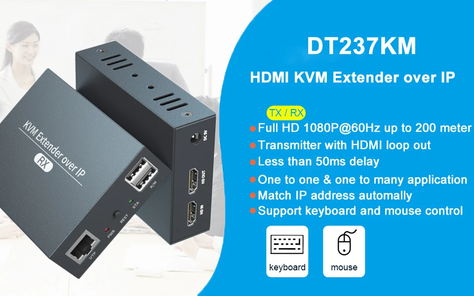 2021 Navceker HDMI KVM Extender sobre IP RJ45 Ethernet Network KVM Extender USB HDMI 200M sobre UTP/STP KVM Extender CAT5 CAT6