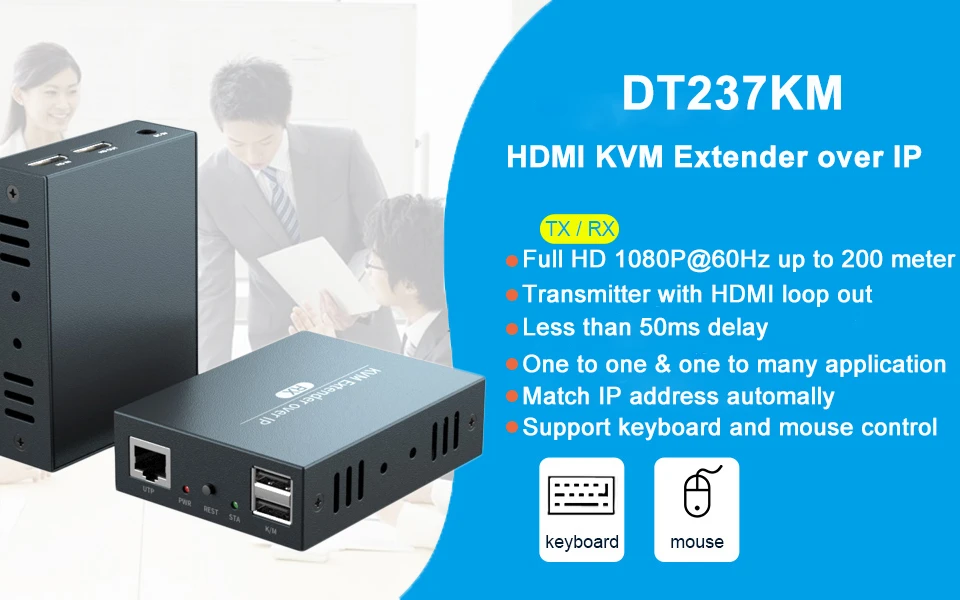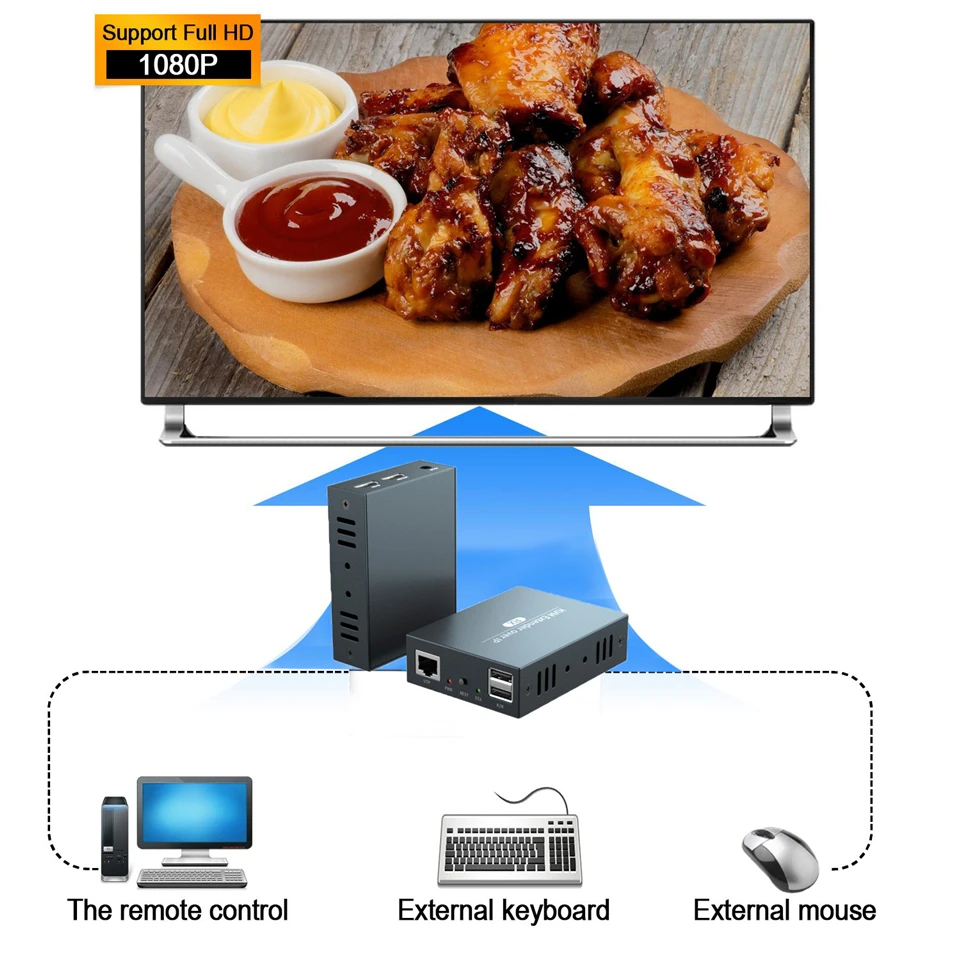 2022 mejor red IP HDMI USB teclado ratón KVM extensor 200m sobre TCP IP 1080P HDMI KVM extensor a través de RJ45 Cat5e/6 Cable para PC