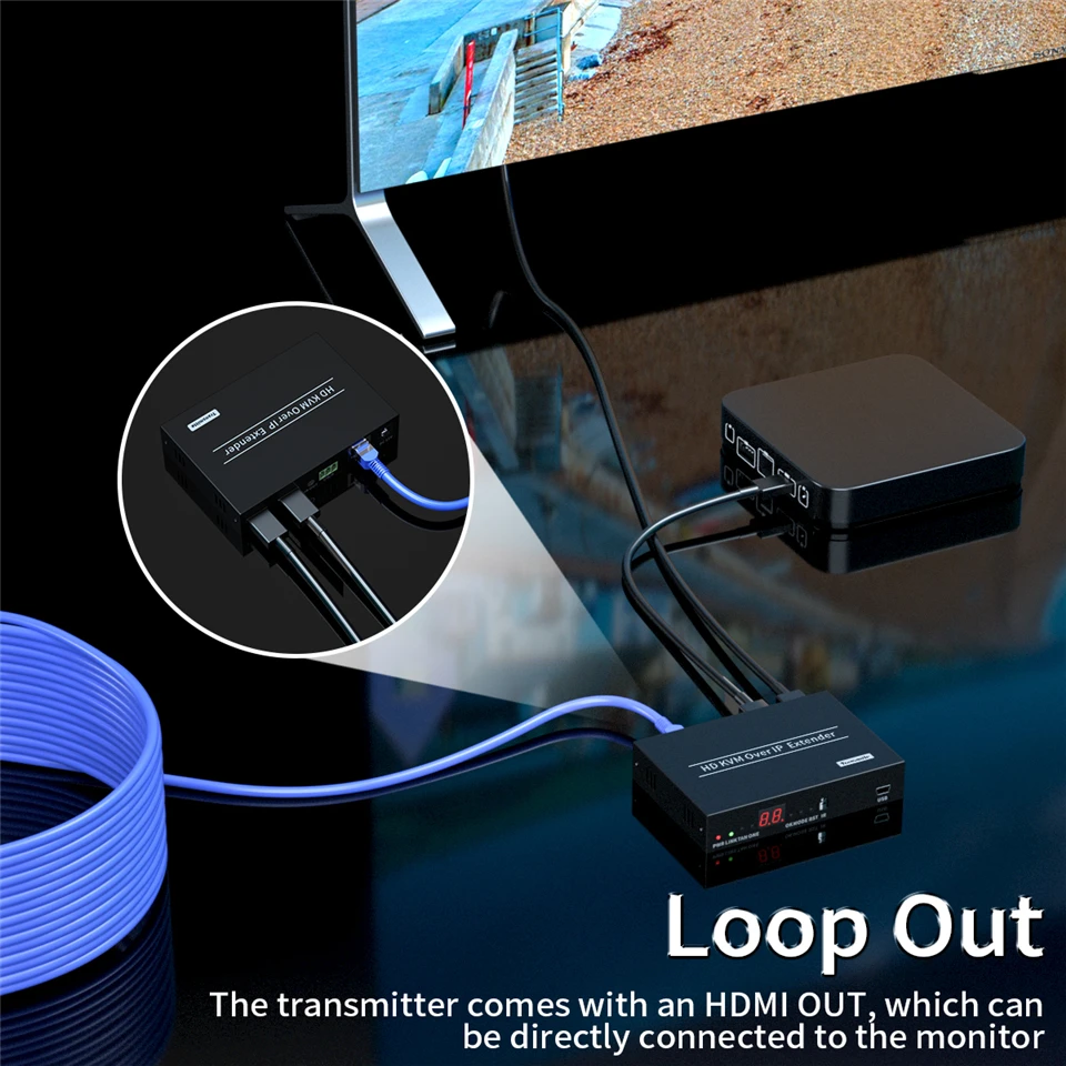 Comprar Navceker-Extensor de red IP USB 2,0, puertos RJ45, 1080P, HDMI sobre LAN, KVM, 200m, HDMI, KVM, Cat5, Cat5e, Cat6