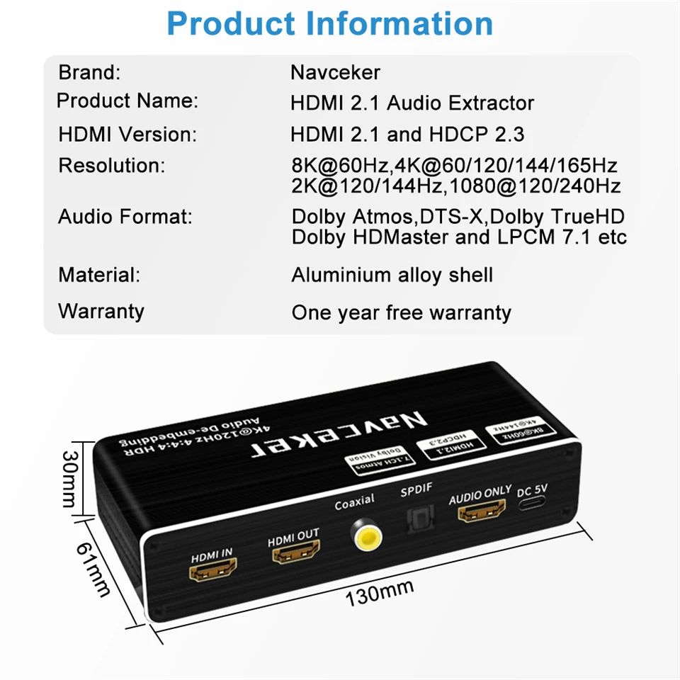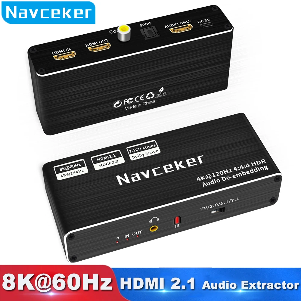 Comprar Navceker-Extractor De Audio 8K, 60Hz, HDMI, 4K, 120Hz, RGB, 4:4:4, HDMI 2,1, convertidor divisor De Audio 7,1, Dolby, Atmos, De-embed para PS5, XBox