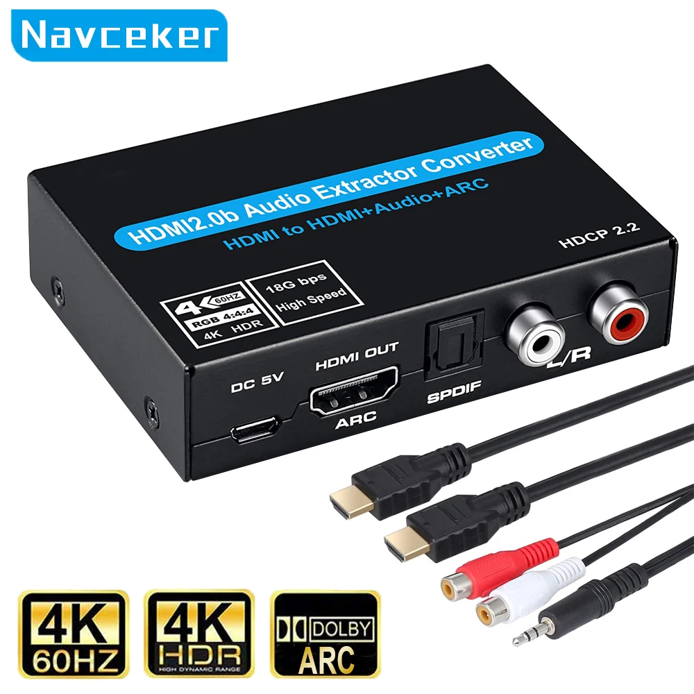Comprar Navceker Extractor de Audio HDMI 4K HDMI ARC Adaptador Divisor Óptico Convertidor Estéreo de 3,5 mm + Salida de Audio L/R Compatible con 5.1 3D 1080P