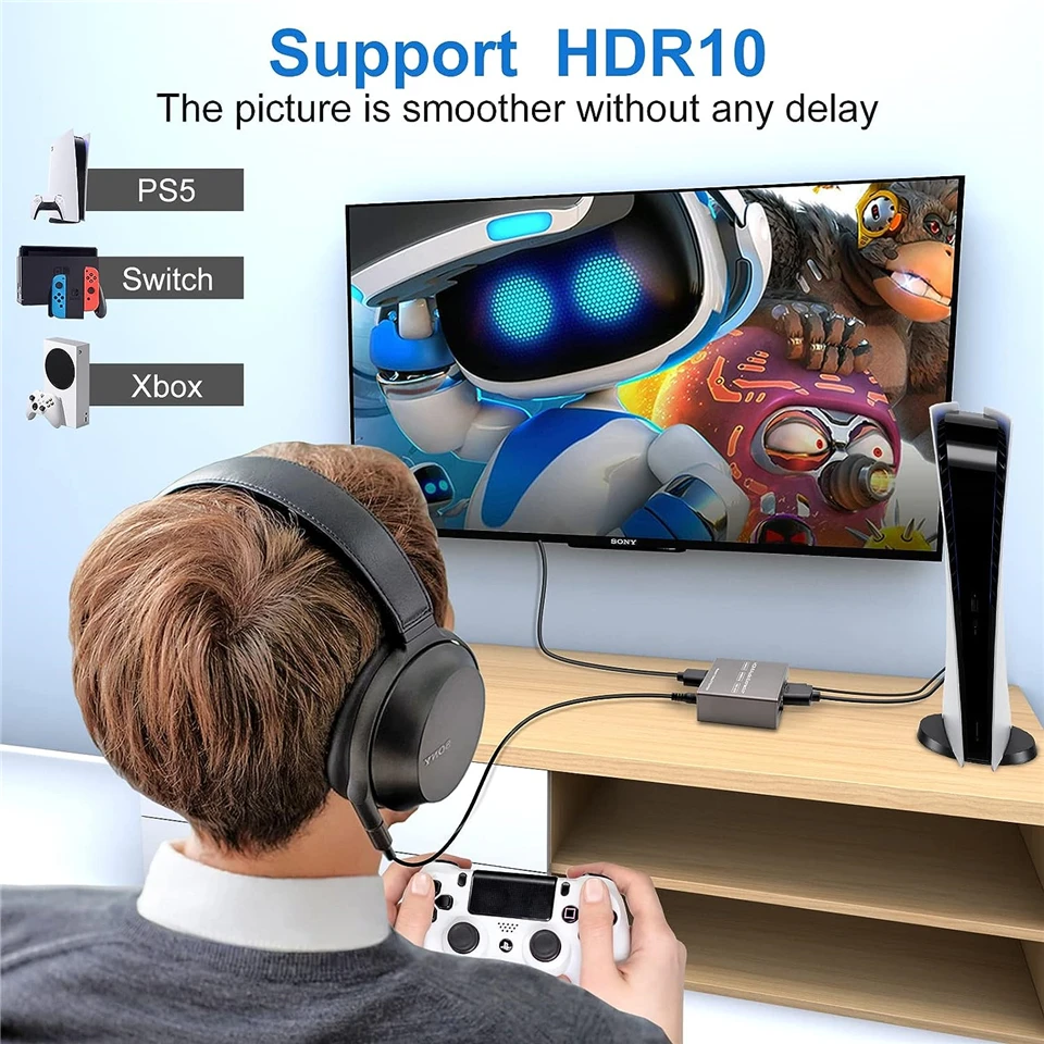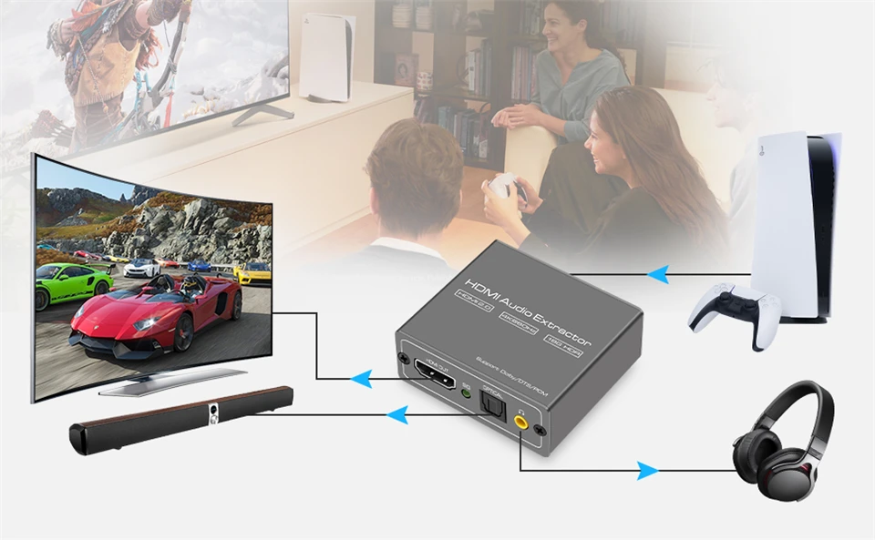 Amplia compatibilidad y Plug and Play: adecuado para varios dispositivos fuente HDMI sin salida de audio dedicada, así como reproductor de Blu-ray/DVD/HD, cable/caja satélite, Amazon Fire TV, PS4,PS5, Xbox, PC/portátil, Cámara HD, DVR HD, etc.