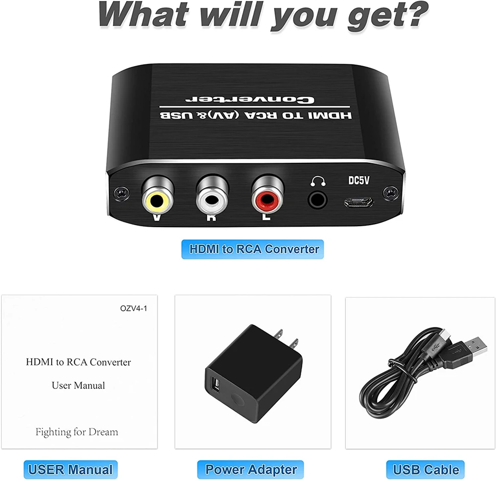 【Lo que obtienes】 1 * CONVERTIDOR HDMI A AV (RCA), 1 * Adaptador de corriente, 1 * manual de usuario.No dude en contactarnos si tiene algún problema, le responderemos dentro de las 24 horas.