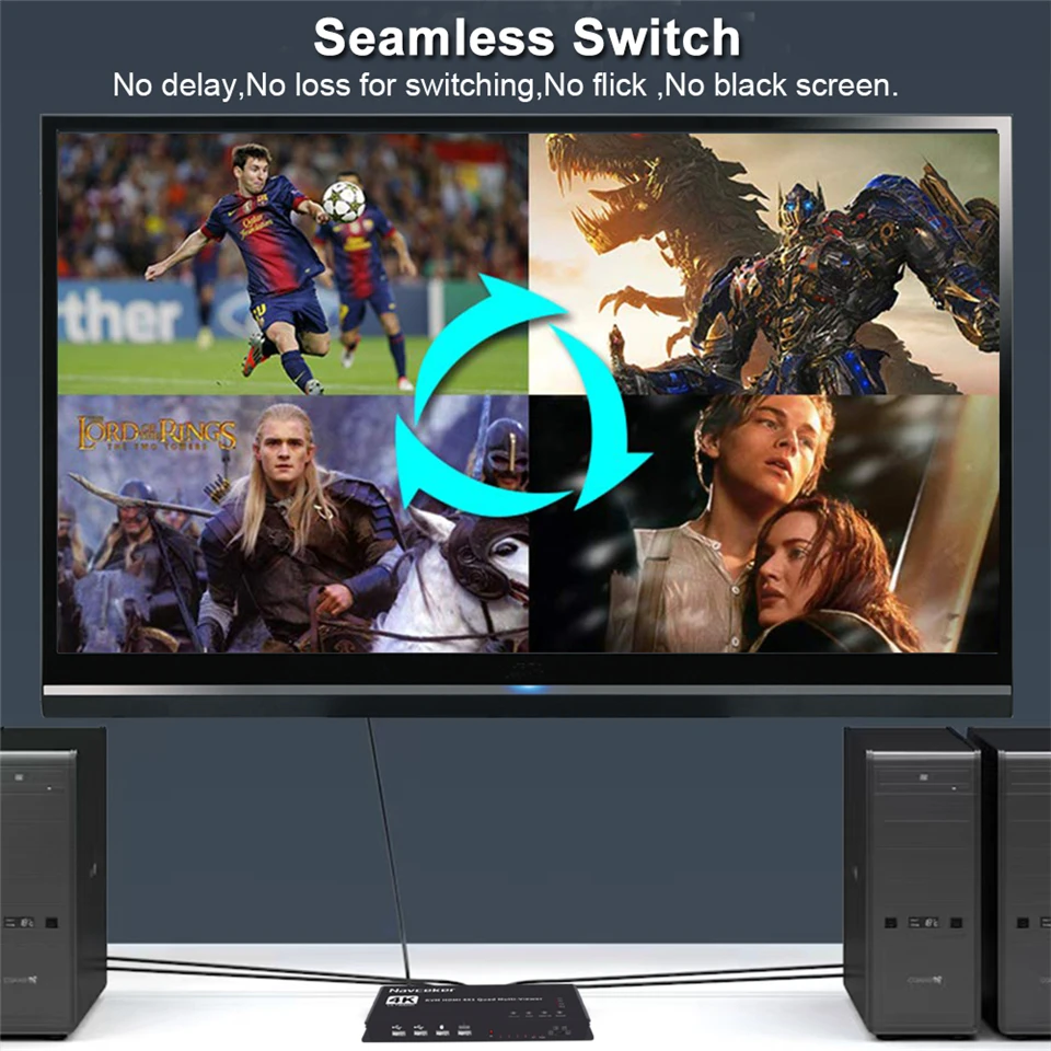 4K KVM HDMI Quad Multi-VIEWER 4X1 1080P 60Hz HDMI Quad Screen Segmentación Multivewer Multi Viewer Seamless HDMI Switch para PC a HDTV