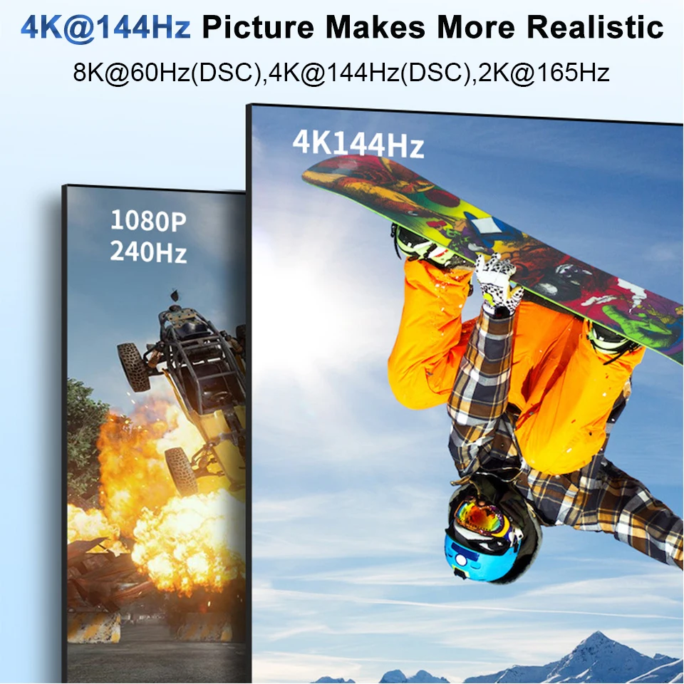 -Resolución: Soporte 1080P/1080 @ 144/165/240Hz, 2K @ 120/165Hz, 4K @ 120/144Hz,8K @ 60Hz resolución, resolución de pantalla adaptable
