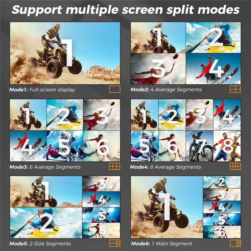 Admite segmentación de pantalla de señal HDMI de 8 canales;